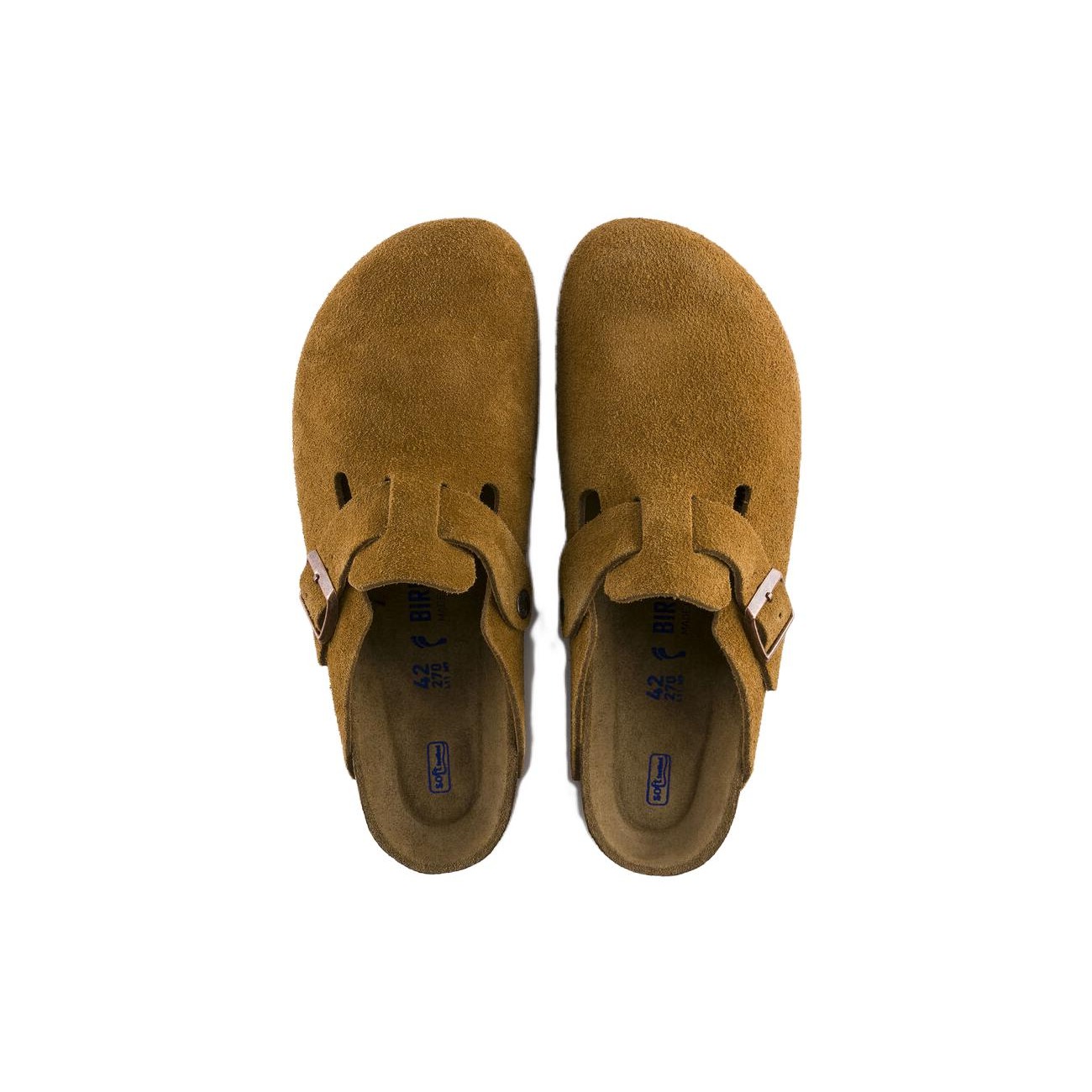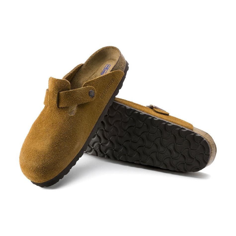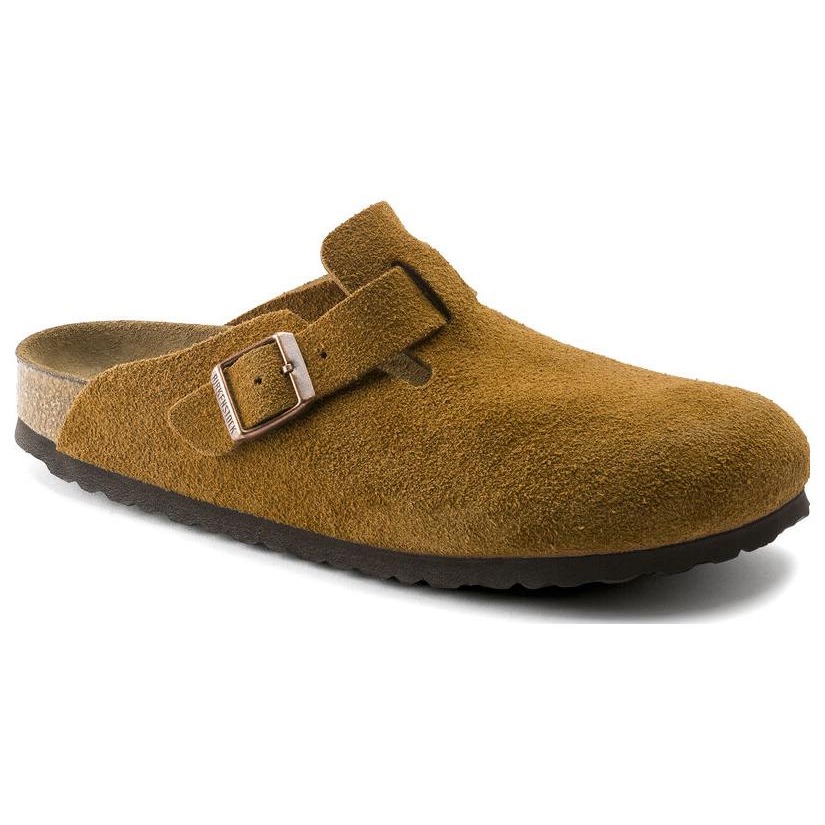 The Birkenstock Boston Soft Footbed Suede Mink offers a classic clog design that has been dressed in a rich colorway and enhanced for all-day comfort. The Mink colorway of the Birkenstock Boston in Suede with a Soft Footbed is a slide-on shoe that features an upper of rich, coppery-brown suede. A midfoot strap threads through a slot at the arch of the foot and fastens at a coppery buckle on the lateral side. The insole is natural brown suede with an underlining of foam designed to provide customized support with wear. Birkenstock branding is debossed on the inner mud guard and stamped in blue on the insole.Our favorite aspects of this classic shoe are the footbed and sole that have been built for comfort. The cork midsole provides springy support, while the EVA outsole, indented with grooves, offers cushioned balance with every step. The Birkenstock Boston Soft Footbed Suede Mink was released on October 15, 2020, for an original retail price of $155.
