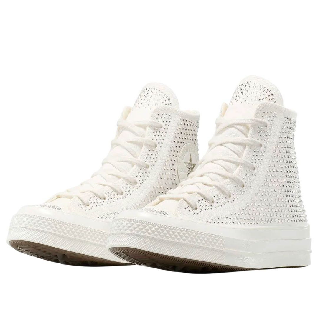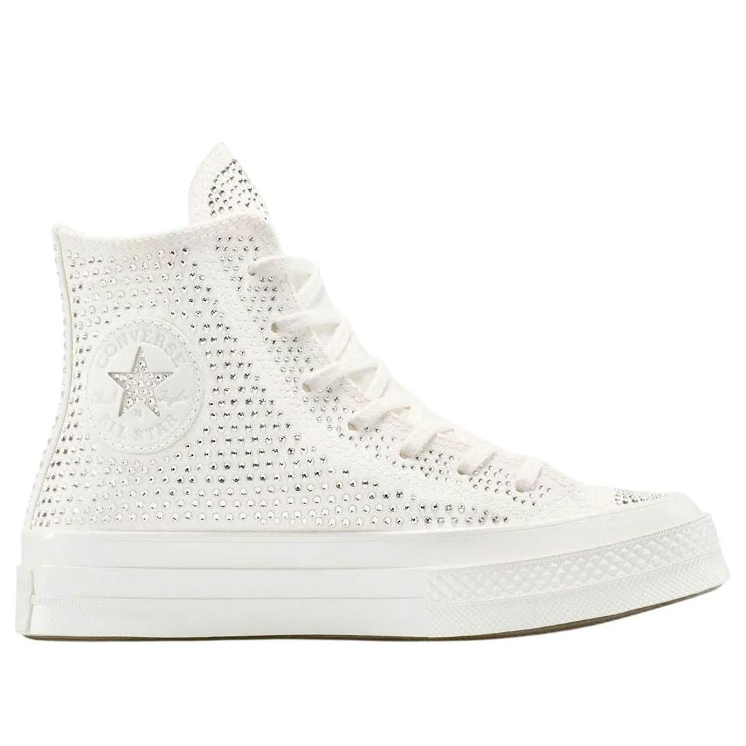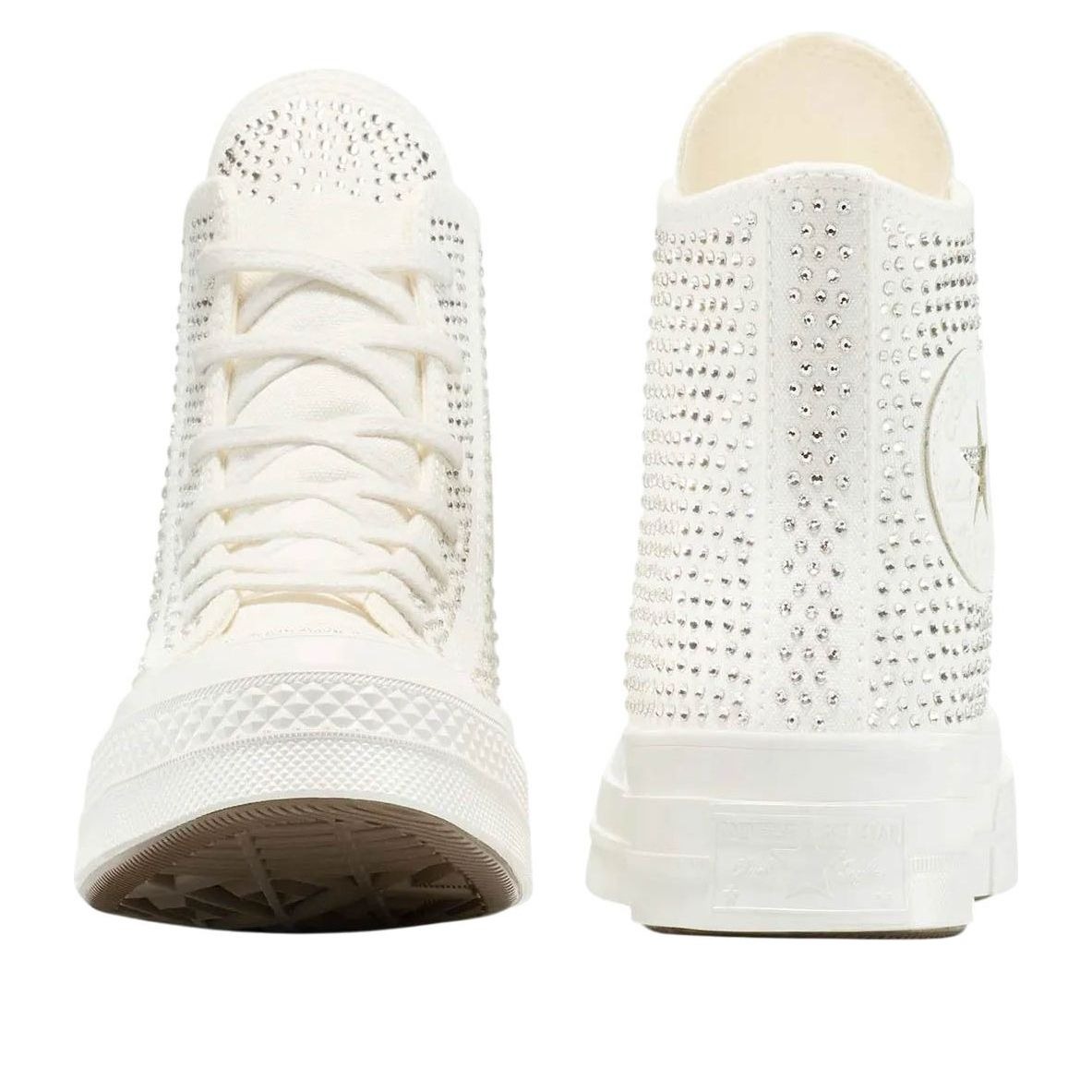 The Converse Chuck 70 Hi Swarovski White features a White/White colorway. This Converse Chuck 70 Hi was first released for $450 on May 02, 2025.