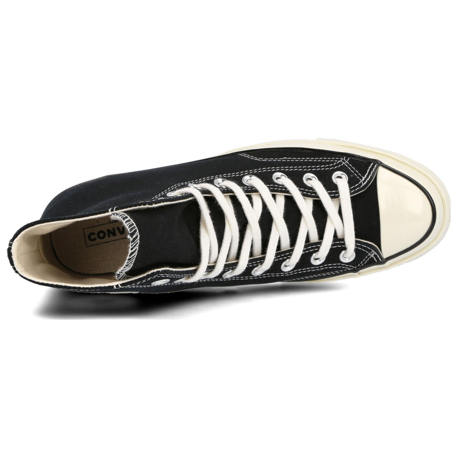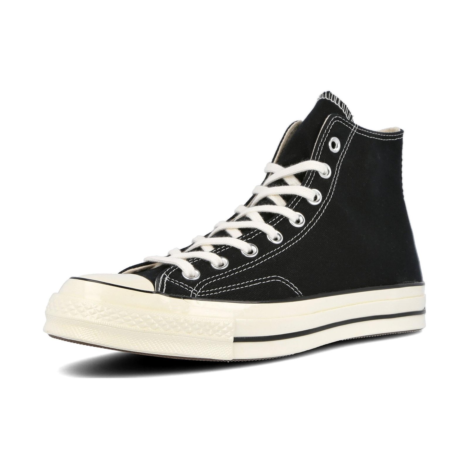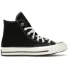 The Converse Chuck Taylor All Star 70s Hi Black provides a classic design that continues the tradition of perhaps one of the oldest athletic shoes in the history of footwear.Although the history surrounding Converse began to take shape as early as 1917, the company designed the Chuck Taylor All Star 70s Hi Black and similar models decades later as part of a tribute to the original shoe. The newer silhouette maintains many of the aesthetic aspects of its predecessor, but some of the fittings and materials have been updated as a way to make a robust shoe that Converse fans and footwear enthusiasts might be able to wear for decades to come. The Converse Chuck Taylor All Star 70s Hi Black includes a premium canvas upper that is double-ply for extra strength and durability while the stitching near the toe is reinforced but designed to keep the classic look of the original. Converse added some extra padding to the insole in an effort to provide collectors or wearers with additional arch support and more cushioning for comfort.The Converse Chuck Taylor All Star 70s Hi Black released in January 2018 for $85.