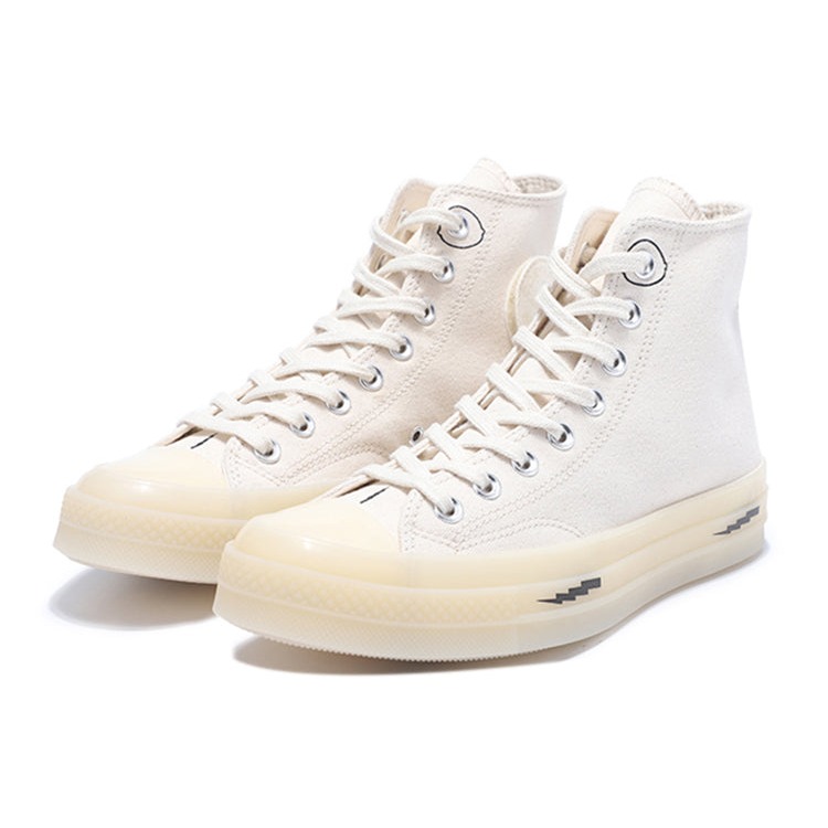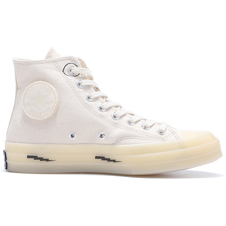 The Converse Chuck Taylor All Star 70s Hi Offspring Community is a reimagined silhouette of the 70s Converse Chuck Taylor All Star, designed by Converse in collaboration with fashion brand Offspring Community.This high-top sneaker boasts a white canvas upper atop a translucent midsole coated with rubber foxing and a similar-colored outsole, vulcanized for durability. The upper for the Offspring Community Converse Chuck Taylor All Star 70s Hi is detailed with white stitching, metallic eyelets, and a Converse Chuck Taylor All Star logo on a white leather patch. Its translucent midsole features lightning bolt graphics and a Converse license plate, while its outsole boasts patterns meant to improve the shoe s traction. Other details on this shoe include OrthoLite cushioning to enhance your comfort and recognizable Offspring head logos outlining the uppermost eyelets.The minimalistic improvements on the Converse Chuck Taylor All Star 70s Hi Offspring Community are what we admire the most about the shoe. Though few, they improve the stylishness of the shoe, released as part of a two-pack collection on August 10, 2019, for $120.