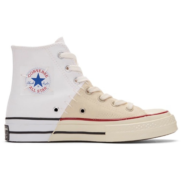 The Converse Chuck Taylor All Star 70s Hi Reconstructed Slam Jam White is a result of the partnership between Converse and Slam Jam, a clothing company deeply rooted in urban street culture.A reimagined version of the silhouette first released in 2019, the White Converse Chuck Taylor All Star 70s Hi Reconstructed Slam Jam features a two-toned canvas upper highlighted with an exposed cut-and-sew seam to connect its panels. This upper sits atop a white midsole with traditional black foxing tape on the rear panel of the shoe and red foxing tape on the front panel, and a semitransparent outsole, vulcanized for powerful underfoot grip. True to the original Chuck 70, this iteration maintains a Converse Chuck Taylor leather patch on its side and a similar logo at the heel.At Newsole, what we love the most about the Converse Chuck Taylor All Star 70s Hi Reconstructed Slam Jam White is its tonal canvas contrast design and comfort. This shoe was released on April 15th, 2019, for $120.