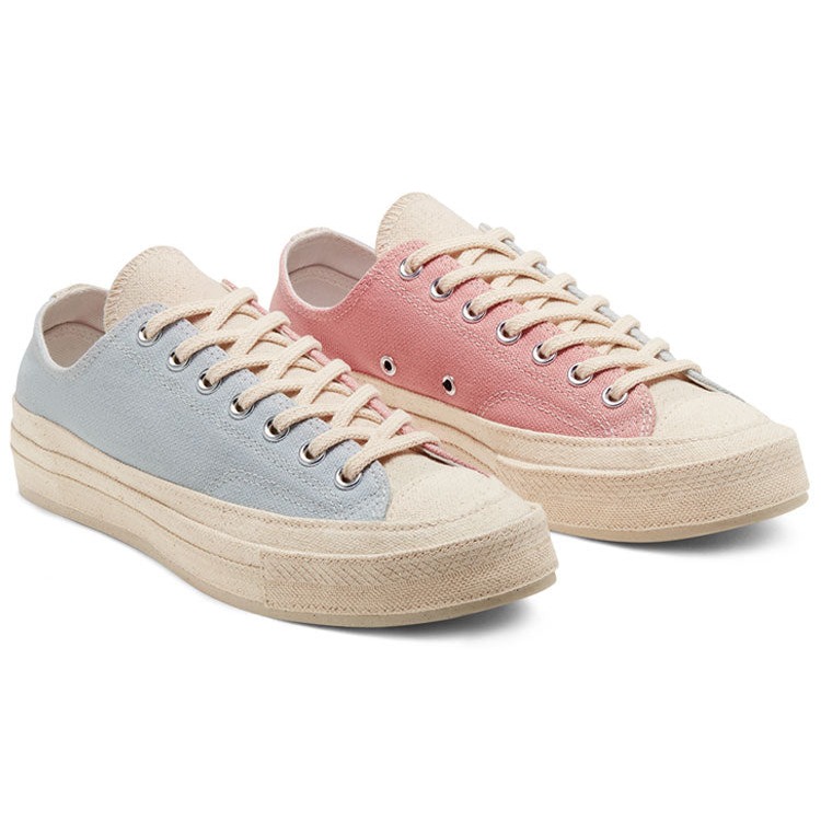 The Converse Chuck Taylor All Star 70 Ox Renew Tri-Color features a Mellow Rose/Plein Air-Egret colorway. This Converse Chuck Taylor All Star 70 Ox was first released for $90 on May 15, 2020.