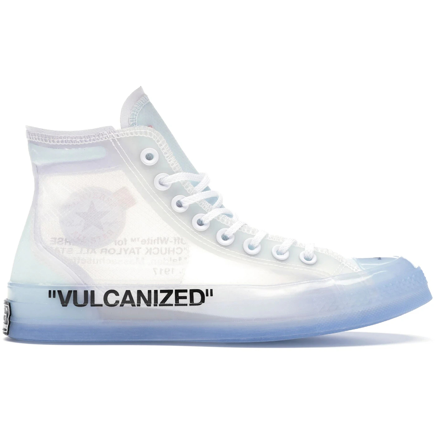 PLEASE NOTE: US and UK sizing is the same for Converse All-Stars. The Converse Chuck Taylor All-Star Hi also made it way into “The 10” Collection. Made in collaboration with Virgil Abloh’s Off-White and Nike, this series brought together all three brands for an exciting new rendition of the classic Converse Chuck Taylor. A part of the “Ghosting” Series, this pair comes in a white, cone and ice blue colorway. Sporting a reconstructed translucent upper, featuring a semi-revealing material to tie-in with the theme. Various materials are found throughout, as well as a red zip-tie, black branding and an icy blue translucent sole. Their release date was November 1st, 2017 where they were available alongside the rest of the Off-White x Nike “Ghosting” Collection. They were available in men’s sizing at select retailers worldwide. If you’re a fan of the Converse Chuck Taylor All-Star and Off-White, this is another must-have pair. Those looking for them can buy one online. If you have one to sell, hit up the marketplace and see what they are going for.