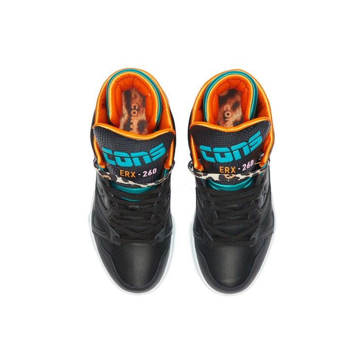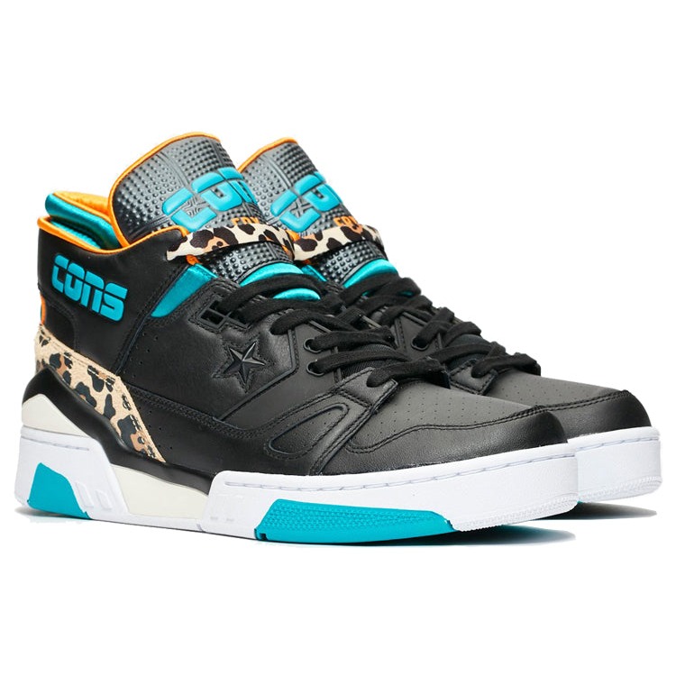 The Converse ERX 260 Mid Just Don Animal Pack Black features a Black/Rapid Teal-Orange Rind colorway. This Converse ERX 260 Mid was first released for $110 on January 12, 2019.