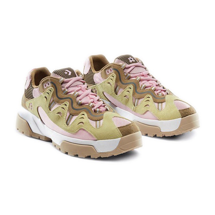 The Converse Gianno Golf Le Fleur Parfait Pink is a collaboration between Converse and the hip hop musician Tyler, The Creator’s fashion brand – Golf le Fleur. This limited edition sneaker combines the Converse design with Golf le Fleur’s aesthetic.The Parfait Pink Converse Gianno Golf Le Fleur has a suede upper material that include a velvet texture. The midsole is thicker and chunkier than the original to provide exceptional comfort and support. Additionally, the Converse logo is visible on the sole and the Golf Le Fleur is on the side. The outsole features a durable traction pattern, making it suitable for a variety of different surfaces.What we think is the outstanding feature of the Converse Gianno Golf Le Fleur Parfait Pink is its unique colorway, which is predominantly Parfait Pink with contrasting accents of green and brown, giving it a fun and quirky look. The Converse Gianno Golf Le Fleur Parfait Pink was released on April 17, 2020 at a retail price of $130.