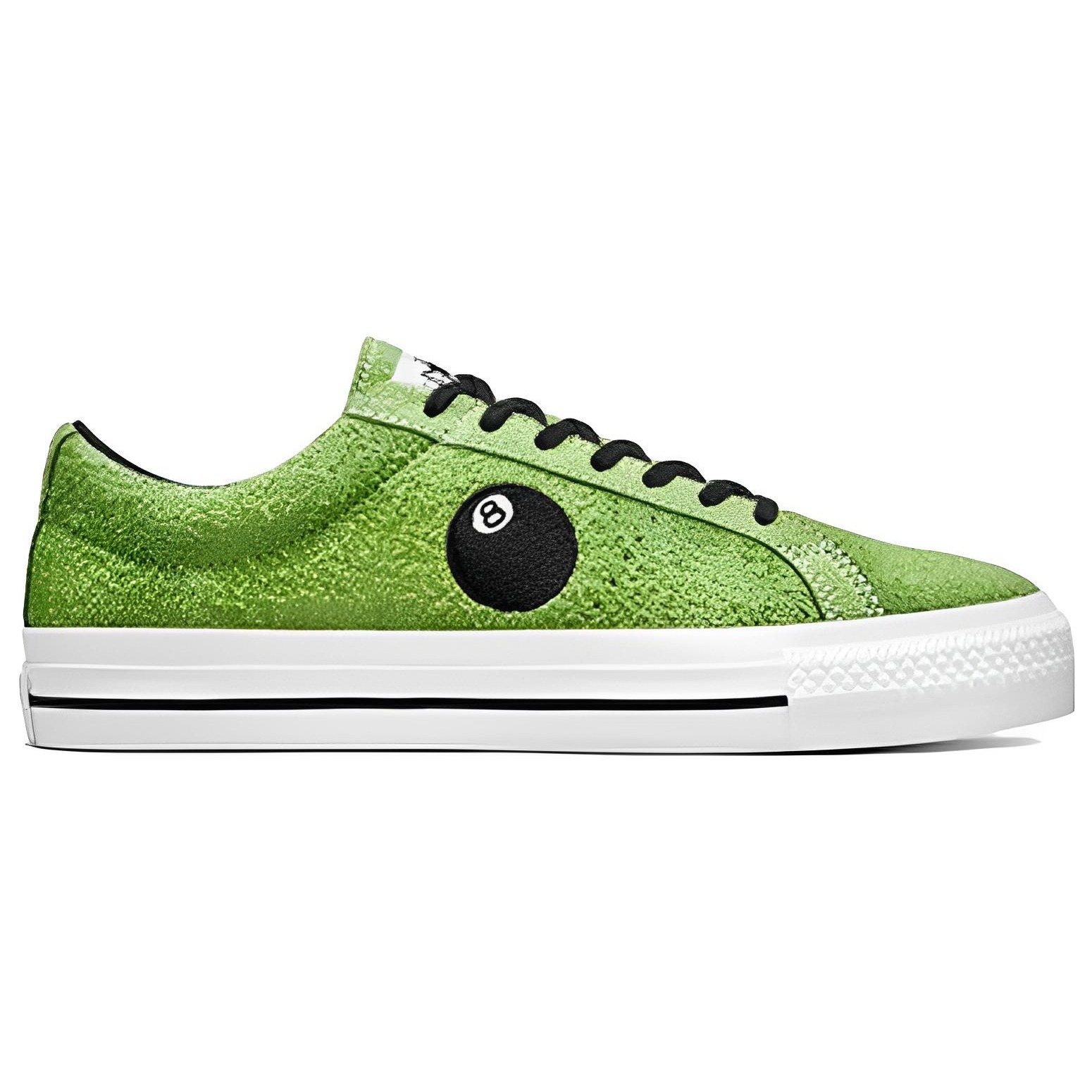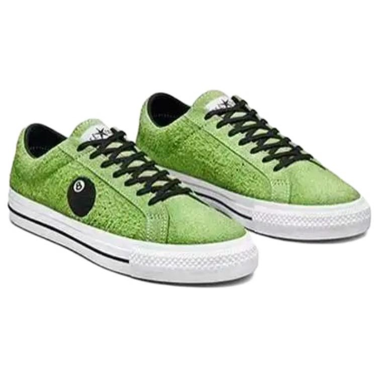 The Converse One Star Pro Ox Stussy 8-Ball is a reworked version of the iconic Converse One Star, redone by Converse in collaboration with American fashion brand Stussy.A low-cut shoe, the Stussy Converse One Star Pro Ox 8-Ball features a green suede upper contrasted by white stitching, black laces, Stussy s eight-ball insignia featured prominently on the lateral side, a stitched Star logo on the medial side, and a woven tongue tag branded All Star. This upper is held in place by a white rubber midsole highlighted by a black pinstripe and a Converse Cons imprint at the heel, and a rubber outsole patterned for stability and hardened for durability. For comfort, this shoe features OrthoLite insoles.What we love the most about this shoe is its green, black, and white color scheme, given that it adds a subtle visual appeal to the shoe. The Converse One Star Pro Ox Stussy 8-Ball was released on May 11th, 2022, for $100.