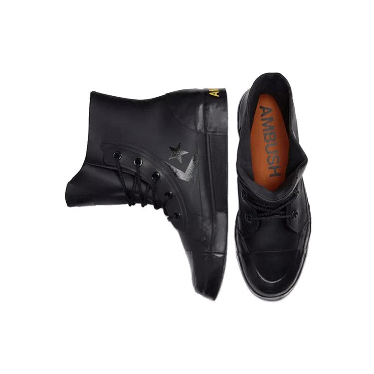 The Converse Pro Leather Hi Ambush Black is a collaboration between Converse and Japanese fashion label Ambush. Released on October 19, 2019, this shoe features a sleek black leather upper with a tonal rubber sole. The iconic Converse star logo is replaced with Ambush’s signature triangle logo on the side, while the heel tab features co-branded detailing. The shoe’s high-top design provides ankle support, while the OrthoLite insole ensures comfort for all-day wear. The Converse Pro Leather Hi Ambush Black is a versatile shoe that can be dressed up or down, making it a great addition to any sneaker collection. At a retail price of $160, this shoe is a premium offering from Converse. The collaboration with Ambush adds a unique touch to the classic Pro Leather silhouette, making it a must-have for sneaker enthusiasts. Something we love about Converse Pro Leather Hi Ambush Black is the attention to detail in the collaboration with Ambush. Our experts think the standout feature of the shoe is the triangle logo on the side, which adds a subtle yet distinct touch to the classic Converse design. Overall, we love the sleek and versatile look of the Converse Pro Leather Hi Ambush Black.