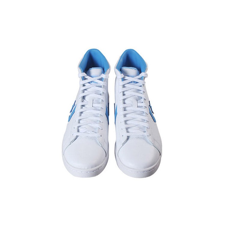 The Converse Pro Leather Hi White Coast Blue is a re-imagined version of the classic Converse shoes made popular by NBA Hall of Famer Julius ‘Dr. J’ Erving in the late 1970s.Decked out in a two-tone color scheme, the White Coast Blue Converse Pro Leather Hi features a leather upper with a pristine white base, accents of Coast Blue on the Converse branded heel tab, iconic Star Chevron logos on both sides, and a Pro Leather inscription in gold foil lettering on the quarter panel. Its upper rests on a rubber outsole with brick-like patterns beneath for traction. Inside the shoe is a branded Lunarlon sock liner for superior full-foot cushioning and arch support.What we love the most about the Converse Pro Leather Hi White Coast Blue is its comfort level. When wearing this shoe, your ankles will feel supported but not restricted. You ll also feel responsiveness. This iteration was originally released on February 14, 2020. At the time, it retailed at $90.