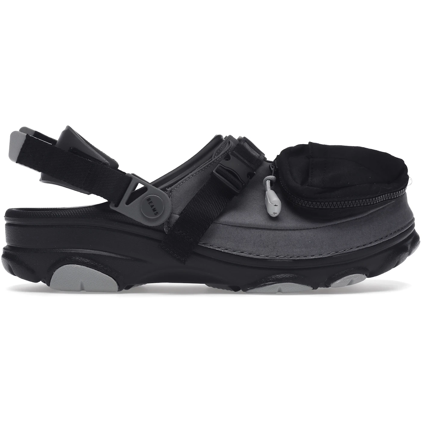 The Crocs Bespoke Classic All-Terrain Beams Outdoor Gray Black embraces the iconic Crocs silhouette, renowned for its low-top, slip-on design.This particular version, the Beams Outdoor Gray Black Crocs Bespoke Classic All-Terrain, features a rugged gray black colorway inspired by the outdoors. Crafted from durable and water-resistant materials, it becomes an ideal choice for outdoor adventures. The clog incorporates a Croslite midsole, ensuring cushioning and effective shock absorption. Additionally, the midsole is equipped with a contoured footbed that conforms to the foot’s shape, providing essential arch support. To further enhance comfort, a micro-bead insole on the midsole imparts a gentle massaging effect. Crocs branding is tastefully placed on the heel strap, footbed, as well as the lateral and medial sides, contributing to its recognizability.The Crocs Bespoke Classic All-Terrain Beams Outdoor Grey Black stands out due to its adaptability to outdoor conditions and rugged terrains, a result of its sturdy build and dependable all-terrain outsole. The clog debuted for $80 on April 30th, 2021.