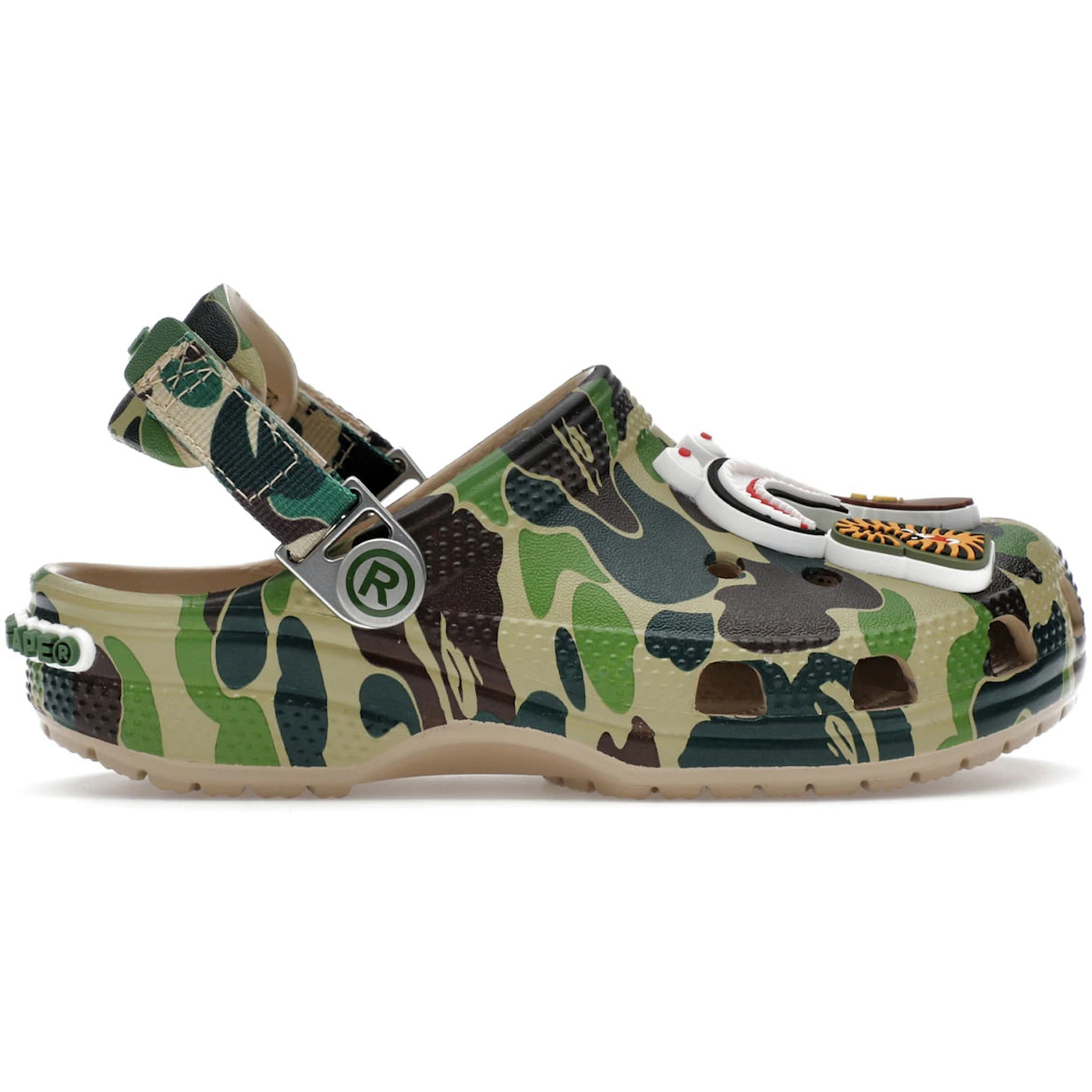 The Crocs Classic Clog A Bathing Ape ABC Camo Green (Kids) features a ABC Camo/Green colorway. This Crocs Classic Clog was first released for $50 on March 08, 2025.