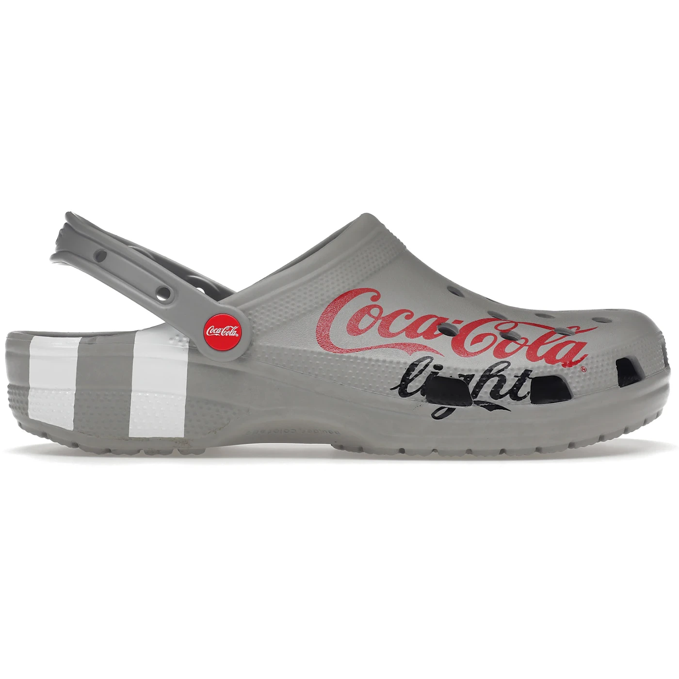 The Crocs Classic Clog Coca-Cola Light features a Grey/Red/White/Black colorway. This Crocs Classic Clog was first released for $55 on August 11, 2021.