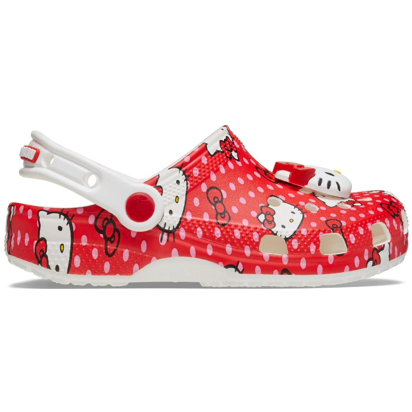 The Crocs Classic Clog Hello Kitty Red Polka Dots (Kids) features a Red/White colorway. This Crocs Classic Clog was first released for $55 on July 30, 2024.