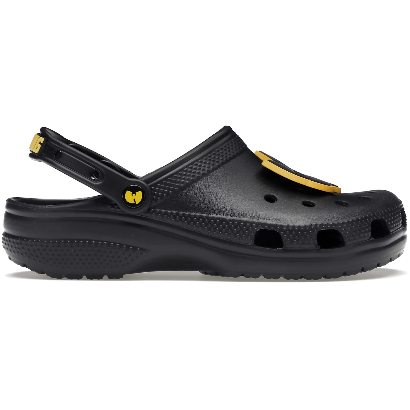 Crocs brand unleashed Crocs Classic Clog Wu Tang Clan Black, which then have become popular since its release. These Wu Tang Clan clogs come in style code 207759-001, dressed in a black colorway with a yellow “WU” logo resting at the home of jibbitz and optional sport mode parts. The construction of Crocs uses Croslite material at the upper part and rubber at the outsole. The perforations at the top and sides of the crocs help in the breathability and removal of excess water logging inside the Croc. The Crocs Classic Clog Wu Tang Clan Black was released at an original retail price of $60 in June 2022.
