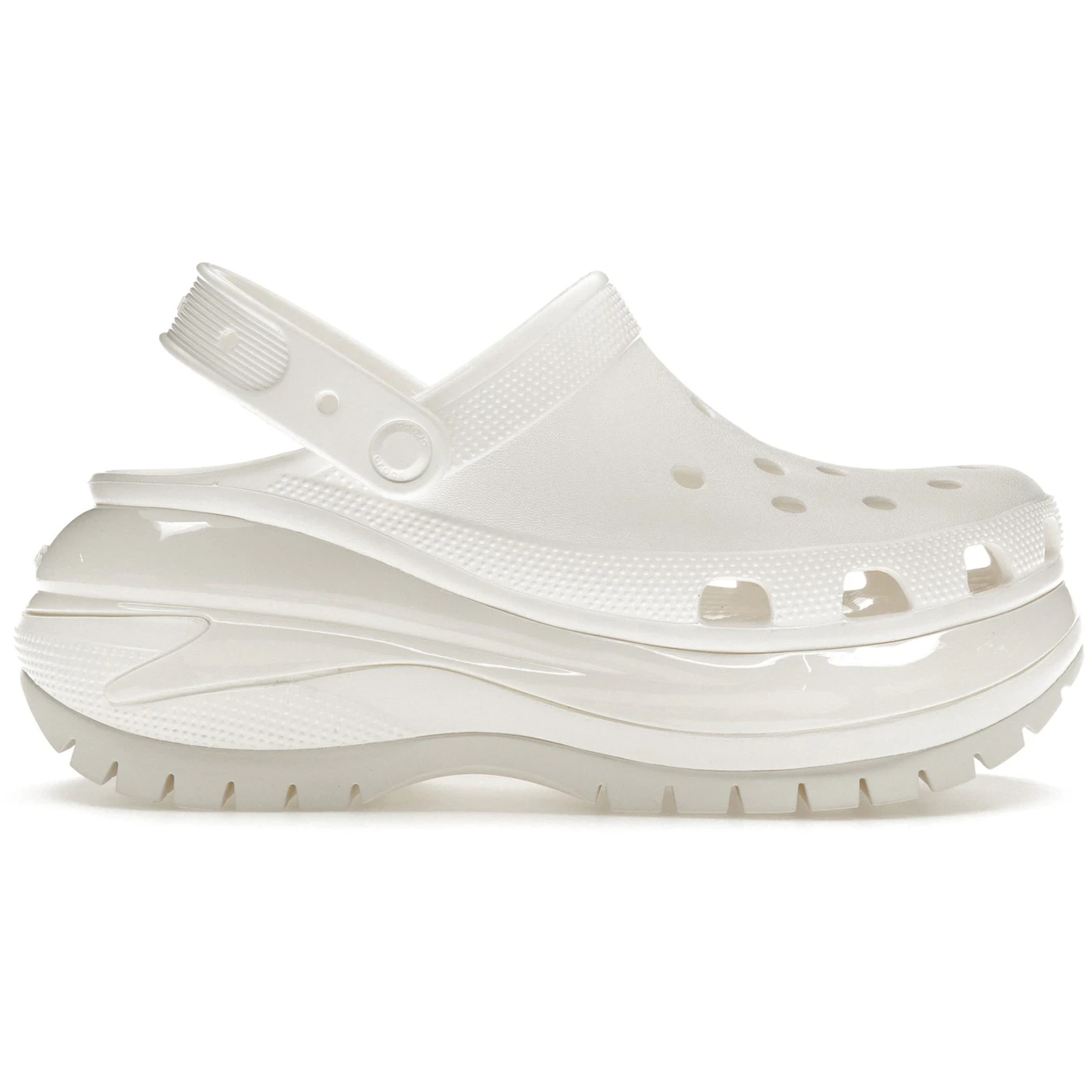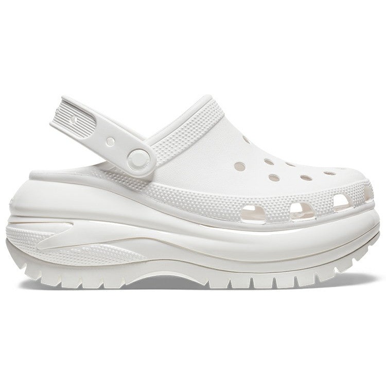 The Crocs Classic Mega Crush Clog White takes the timeless comfort of Crocs and gives it a bold, elevated look with its platform sole and oversized silhouette. This all-white version offers a clean, minimalist aesthetic that s perfect for pairing with anything from casual outfits to streetwear looks. Designed for those who want both comfort and style, the Mega Crush Clog stands out with its towering sole, making it an instant fashion statement. Built with Crocs signature Croslite foam, the Mega Crush Clog provides lightweight comfort and durability for all-day wear. The chunky platform not only adds height but also introduces an edgy, modern twist to the classic clog design. Featuring ventilation ports for breathability and an adjustable backstrap for a secure fit, this model retains all the functionality Crocs is known for while offering a high-fashion edge. Released on February 27, 2023, the Crocs Classic Mega Crush Clog White retailed for $75. With its clean, versatile colorway and fashion-forward silhouette, this clog is ideal for those who want to add a bold touch to their wardrobe while keeping things comfortable and practical.