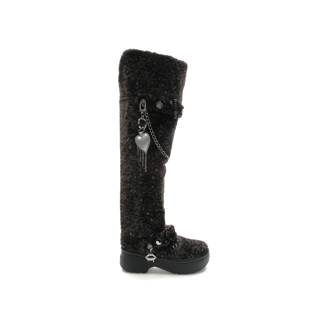Crocs Classic Unfurgettable Knee High Boot Black Leopard (Women’s)