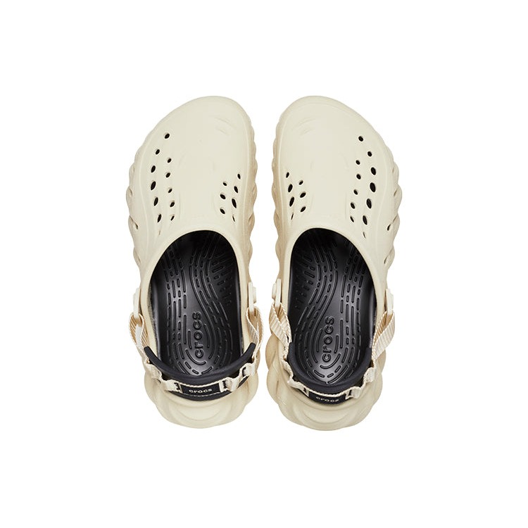 The Crocs Echo Clog Bone Black features a Bone/Black colorway. This Crocs Echo Clog was first released for $70 on May 07, 2023.