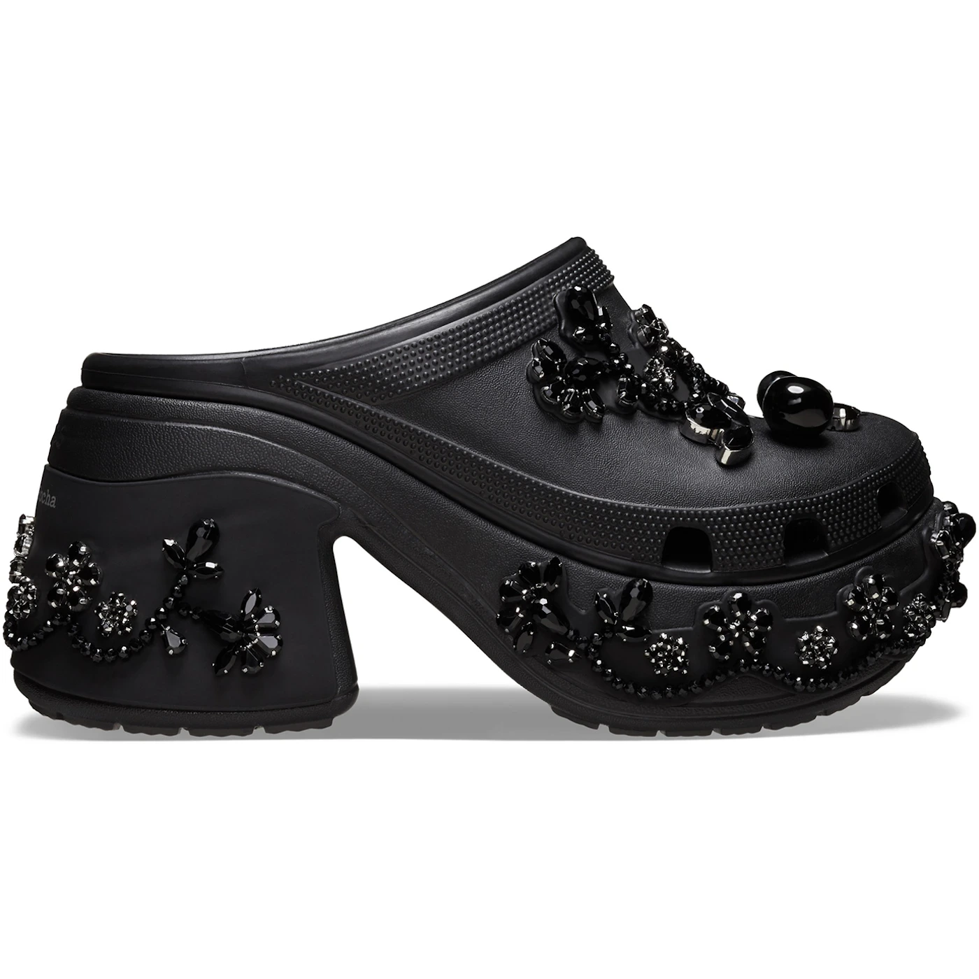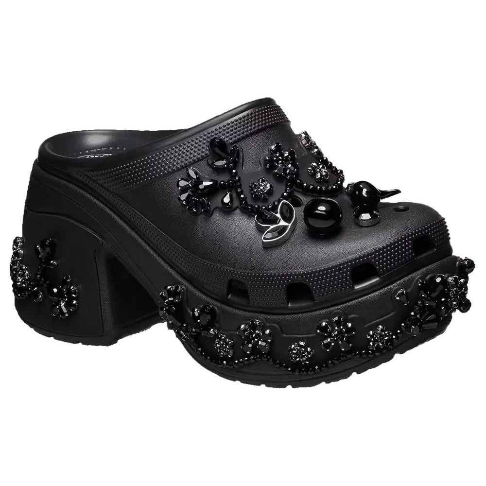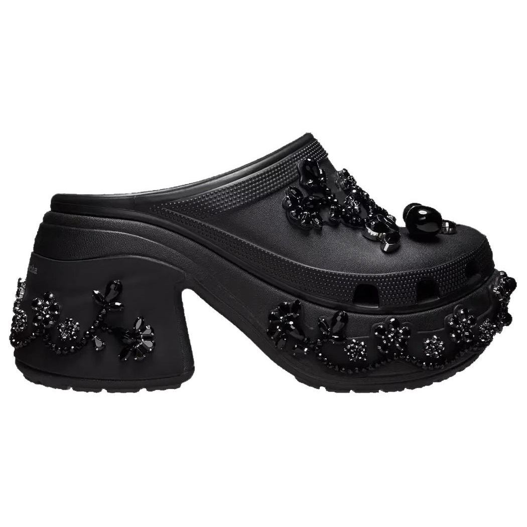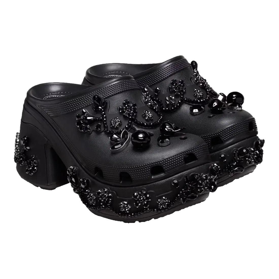 The Crocs Siren Clog Simone Rocha Black is another luxurious collaboration between Crocs and Irish designer Simone Rocha, known for her intricate, feminine designs. This black version of the Siren Clog features Simone Rocha s signature embellishments, including pearls and translucent accents, giving the typically rugged Crocs clog an elegant, high-fashion makeover. It s the perfect blend of functionality and couture, making it a standout piece in any wardrobe. The Siren Clog features a platform heel, adding height without sacrificing comfort. Crafted from lightweight Croslite foam, the shoe ensures wearability for extended periods, while Rocha s luxurious detailing elevates the overall aesthetic. The black colorway offers versatility, making it easy to pair with a variety of outfits while still providing a statement-making look. Released on April 10, 2024, the Crocs Siren Clog Simone Rocha Black retailed for $275. This collaboration brings together Crocs practical comfort and Simone Rocha s high-end design, making it a must-have for those who love fashion-forward footwear with a touch of elegance.