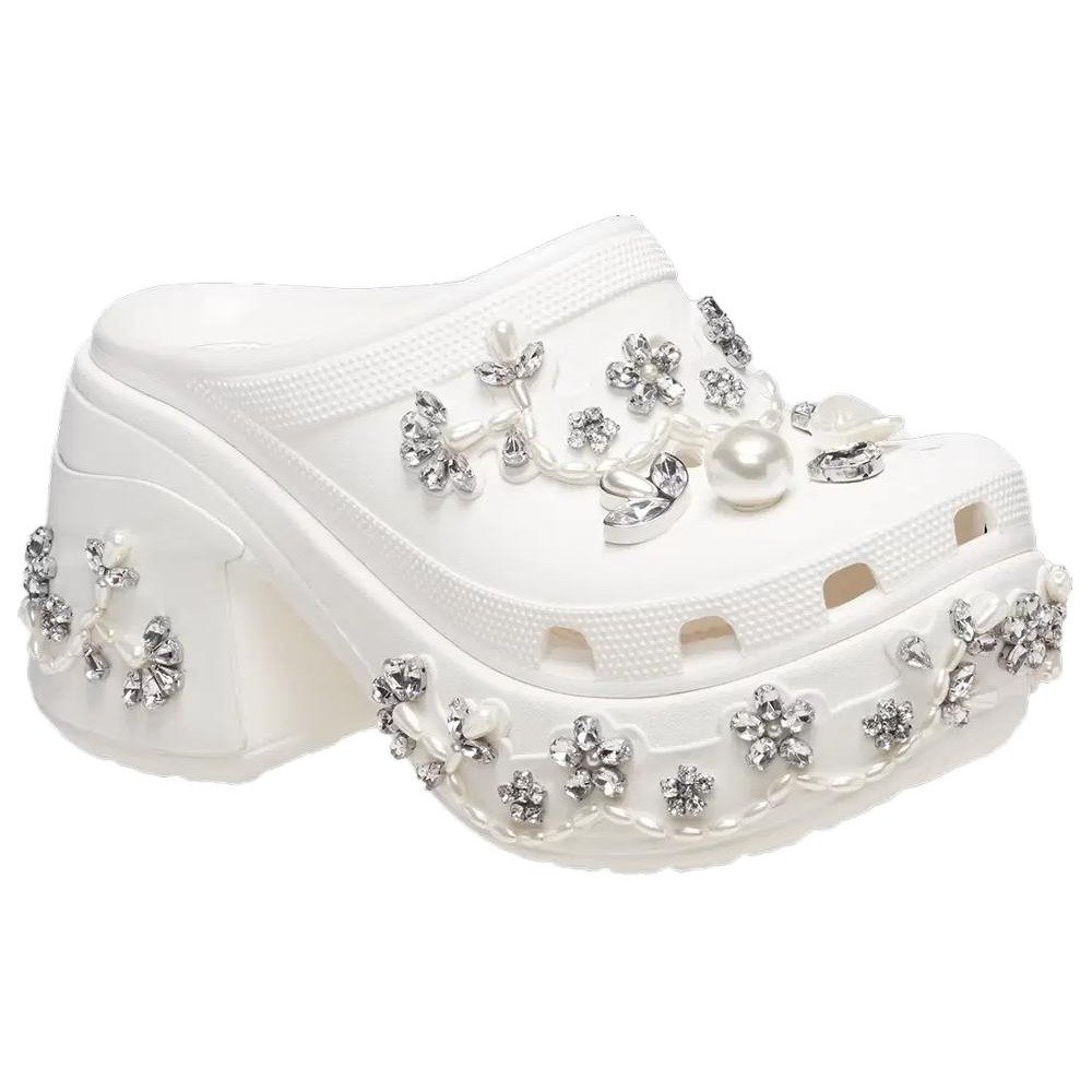 The Crocs Siren Clog Simone Rocha Chalk is another stunning collaboration between Crocs and renowned designer Simone Rocha. This iteration brings a more ethereal and delicate feel with its chalk-white colorway, coupled with Rocha s signature embellishments such as pearls and translucent accents. Known for blending the worlds of high fashion and everyday functionality, Rocha brings her unique design perspective to the Crocs Siren model, elevating it to a chic, wearable work of art. The Siren Clog features a platform heel, adding height without compromising on comfort. Made from lightweight Croslite material, this model ensures all-day wearability while still delivering a runway-ready aesthetic. The chalk-white tone paired with Rocha s feminine detailing makes this clog perfect for fashion-forward individuals who love to mix elegance with casual comfort. Released on April 10, 2024, the Crocs Siren Clog Simone Rocha Chalk retailed for $275. This collaboration perfectly balances Crocs’ comfort and Simone Rocha s couture sensibility, offering a truly unique pair that stands out in both fashion and function.
