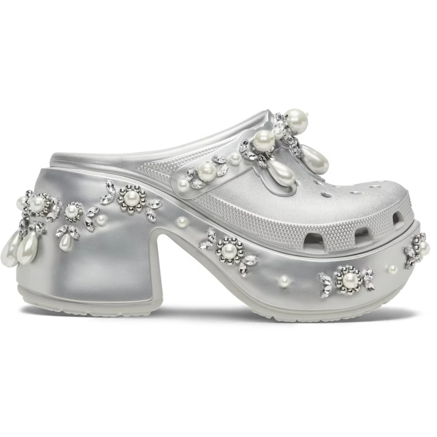 The Crocs Siren Clog Simone Rocha Spiked Silver features a Silver colorway. This Crocs Siren Clog was first released for $275 on October 11, 2024.