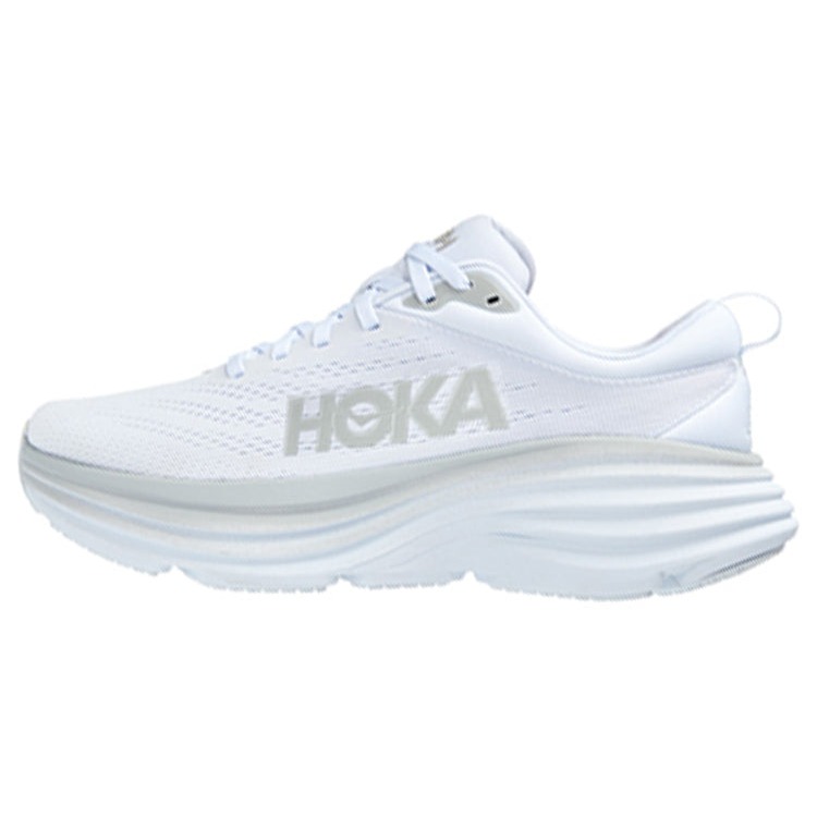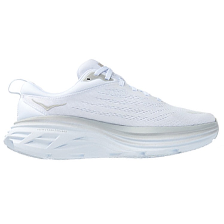 The Hoka One One Bondi 8 Triple White for women is designed to offer maximum comfort and style for your running and daily wear needs. Featuring a pristine white-on-white colorway, this sneaker is a testament to Hokas commitment to blending performance with sleek aesthetics. Whether youre hitting the gym or the streets, the Bondi 8 ensures you stand out with its clean, minimalist look. Equipped with Hokas signature cushioning technology, the Bondi 8 provides unparalleled support and comfort, perfect for long-distance runs and everyday activities. The engineered mesh upper offers breathability and a snug fit, while the enhanced heel collar adds an extra layer of comfort and stability. This combination makes the Bondi 8 not just a shoe, but a trusted companion for your active lifestyle. Released on September 8, 2022, the Hoka One One Bondi 8 Triple White for women retailed at $165. Its pure white colorway, combined with advanced cushioning and support, makes it a must-have for those who value both style and performance in their footwear. Elevate your sneaker game with the Bondi 8, where form meets function seamlessly.