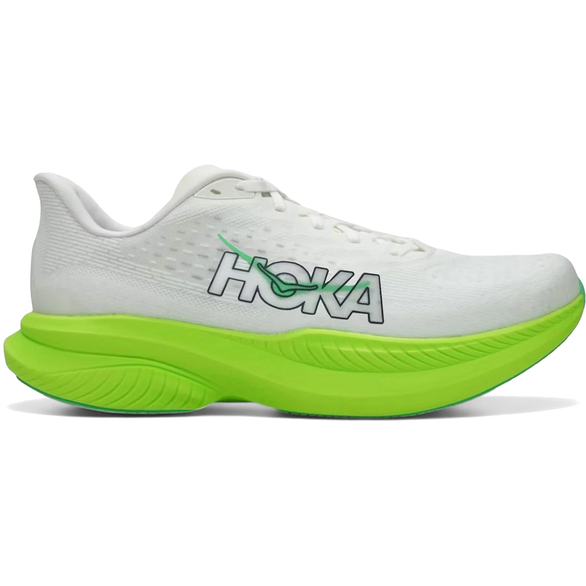 The Hoka One One Mach 6 White Neon Lime features a White/Neon Lime colorway. This Hoka One One Mach 6 was first released for $140.