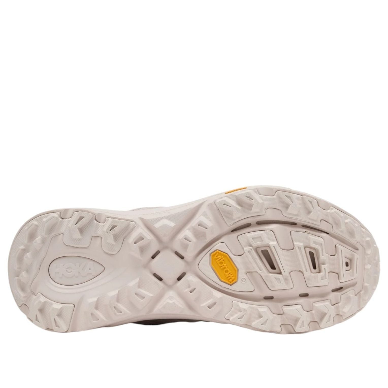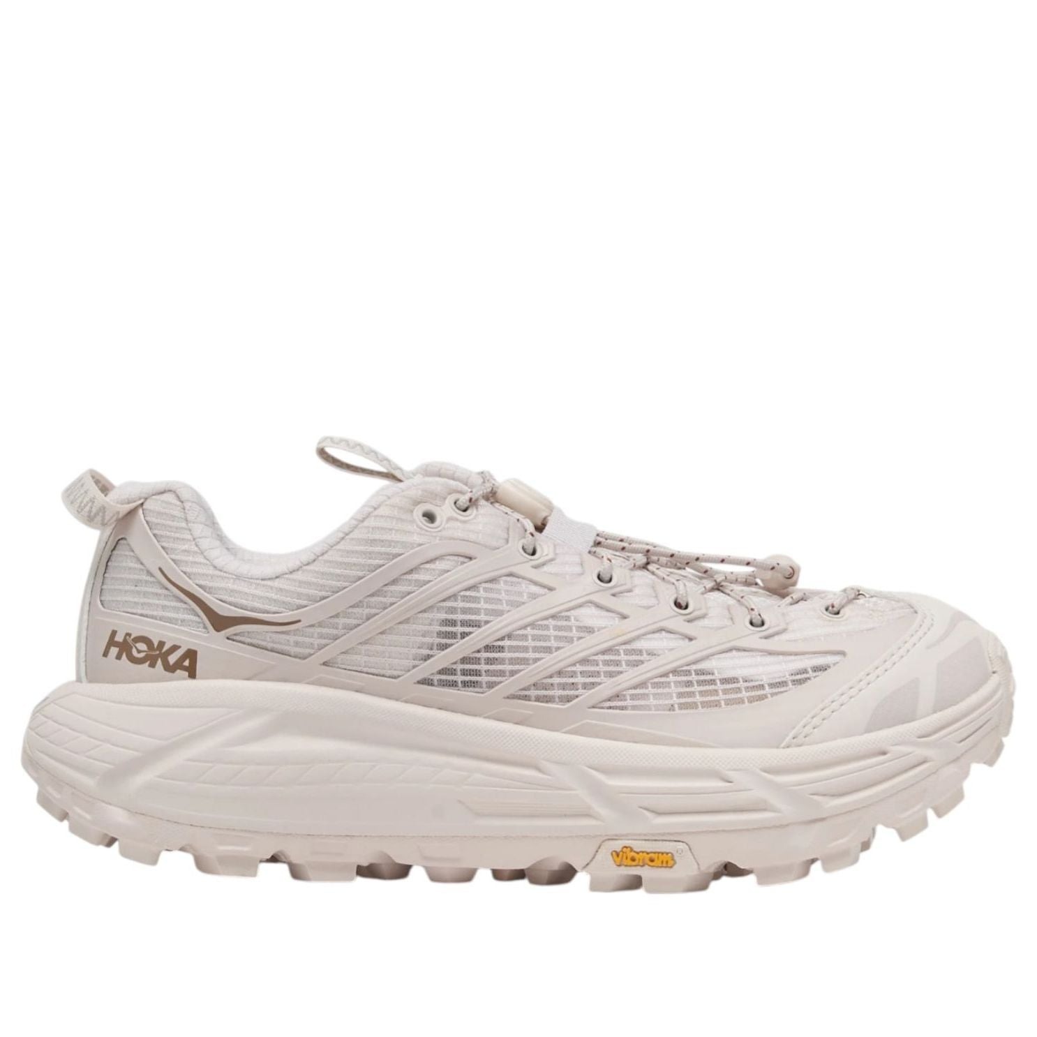 The Hoka One One Mafate Three 2 Grid Rose Cream Stucco features a Rose Cream/Stucco colorway.