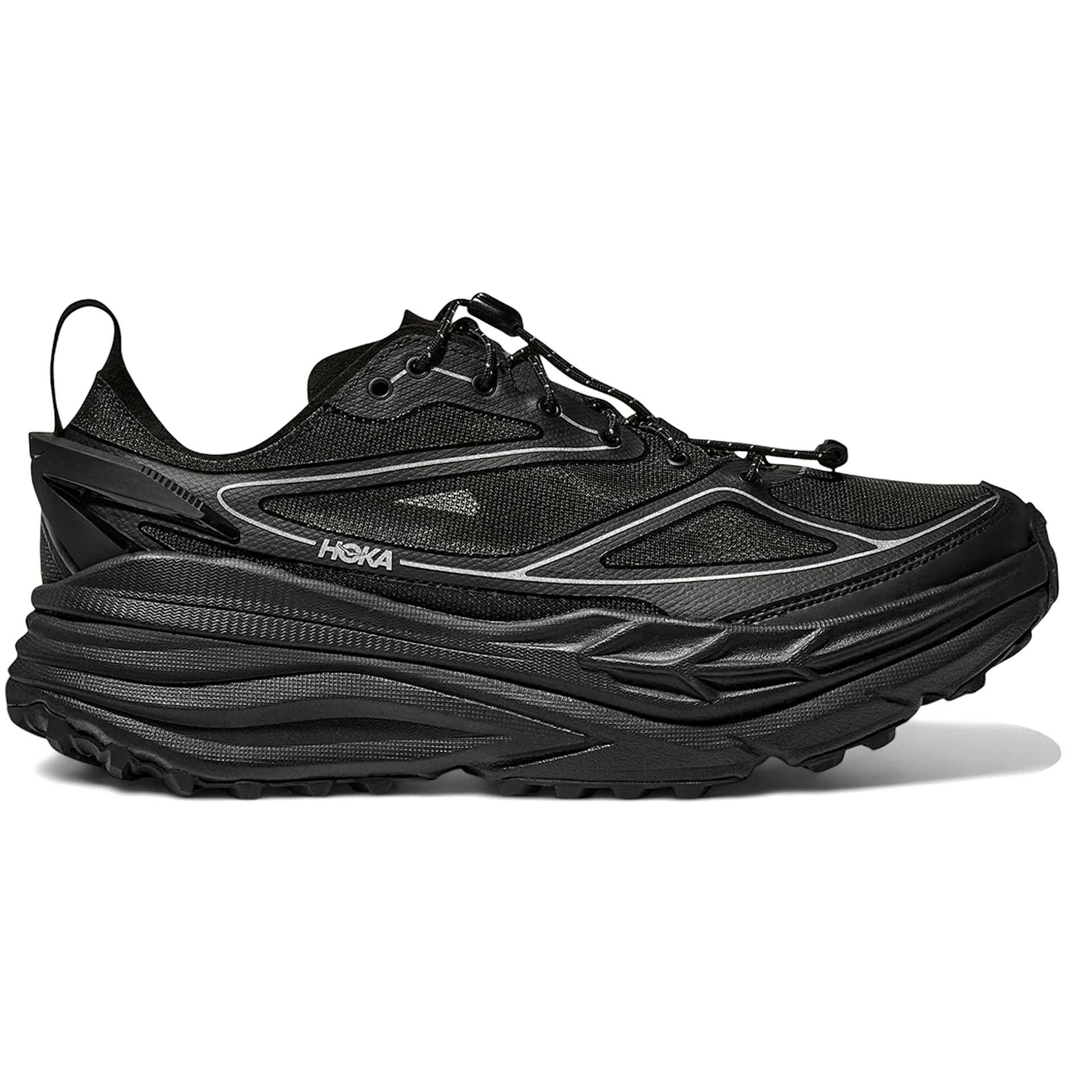 The Hoka One One Stinson One7 Black Silver features a Black/Silver colorway.