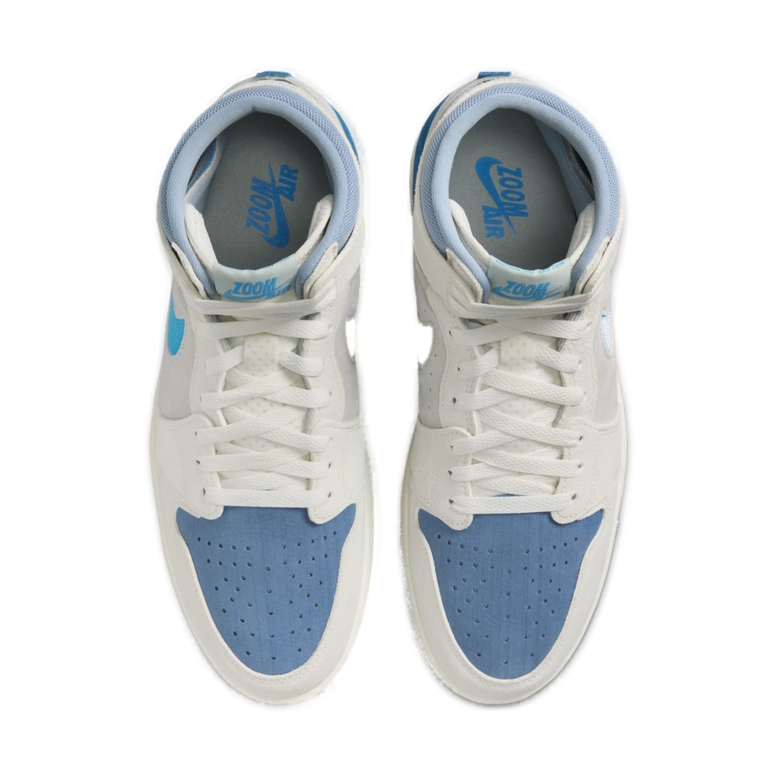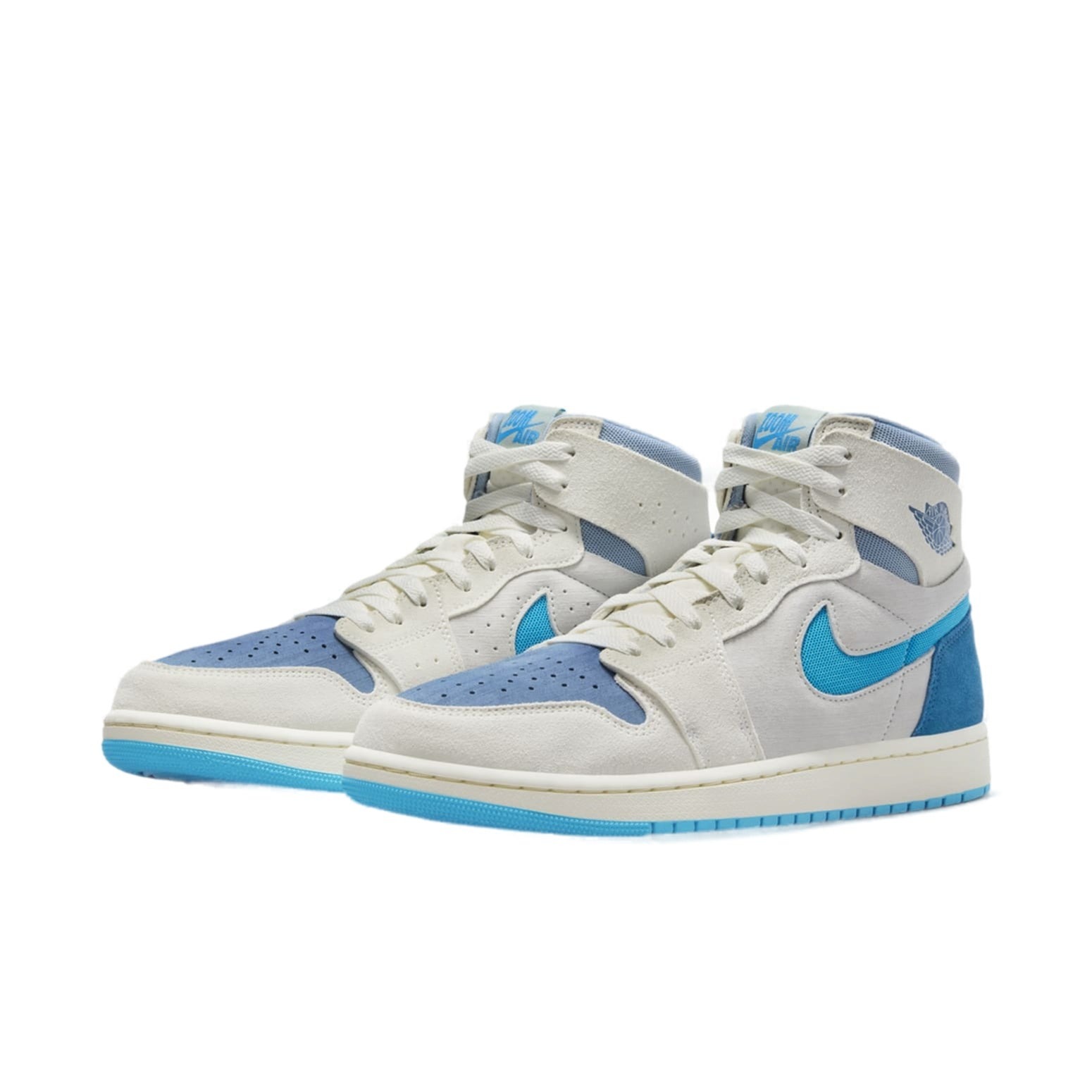 The Jordan 1 High Zoom Air CMFT 2 Dark Powder Blue features a Sail/Blue Grey/Light Silver/Dark Powder Blue colorway. This Jordan 1 High Zoom Air CMFT 2 was first released for $150 on February 13, 2024.