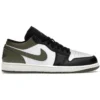 The Jordan 1 Low Black Toe Medium Olive features a Black/Medium Olive/White colorway. This Jordan 1 Low was first released for $115 on September 20, 2024.