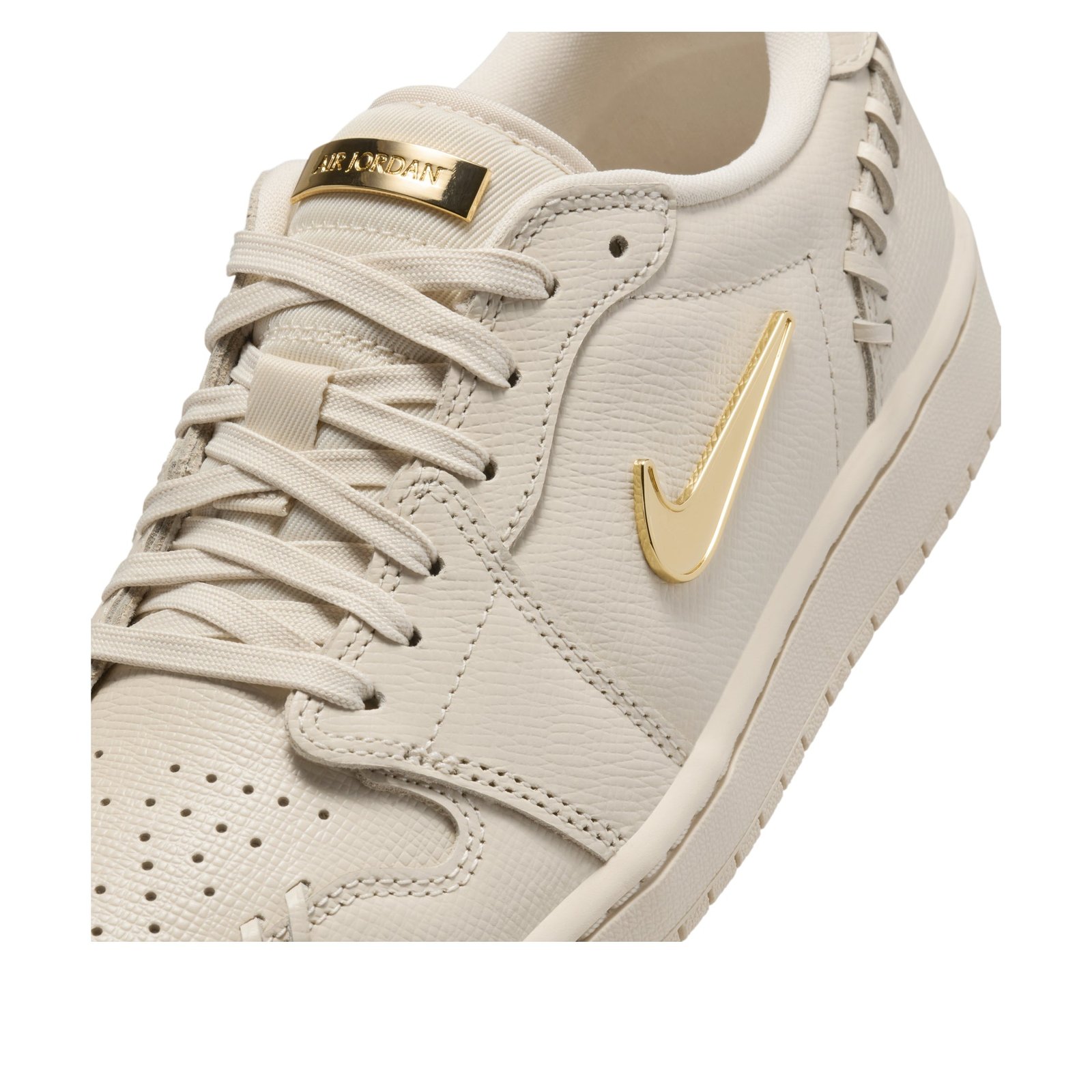 The Jordan 1 Low Method of Make Legend Light Brown (Women s) is a low-top sneaker with a design that pays homage to the original design of the Air Jordan 1.This version of the Jordan 1 Low is made with a leather upper in Legend Light Brown. The toebox is perforated for breathability, and leather overlays in the same color can be seen around the toebox, under the laces, and at the heel. Large baseball stitches connect the different panels of the upper to each other. The Nike Swoosh appears in metallic gold on the midsole, while the Air Jordan logo adorns the heel also in metallic gold. Another metallic gold Air Jordan tag can be found on the tongue. What makes this women’s shoe stand out is the unique baseball stitching on the upper. This large detail sets the shoe apart from other, simpler designs. The Jordan 1 Low Method of Make Legend Light Brown (Women s) was released on March 20, 2024, for a price of $135.