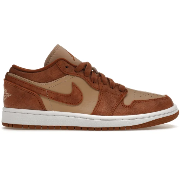 The Jordan 1 Low SE Legend Coffee (Women’s) is a low-top women s silhouette whose colorway was inspired by coffee.This iteration of the Air Jordan 1 Low SE is made with a leather upper in a light brown color. Leather forms the toe box, which is perforated for breathability, the tongue, and the sides of the shoe. Darker brown suede overlays create a paneled design, as they line the toe box, run under the laces, and form the ankle area and heel counter. The Nike Swoosh also appears on each side in darker brown suede. The Air Jordan logo is stitched into the heel counter and a Jumpman logo appears on the tongue. A white rubber sole and brown outsole complete the look of this shoe, and it is enhanced with Nike Air cushioning technology. Our favorite feature of this sneaker is the neutral coffee-colored colorway. This allows the shoe to go with almost any outfit. The Jordan 1 Low SE Legend Coffee (Women’s) was released on December 27, 2023, for a price of $125.