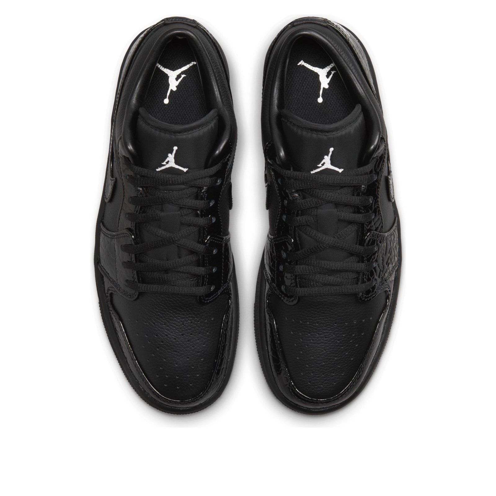 The Jordan 1 Low SEPatent Elephant Black (Women’s) is a sophisticated, high-fashion sneaker for fun and dressy wear. It is all-black, made of high-quality leather, and accented with a patterned and textured patent leather material for an elegant touch.Of course, the shoe is made extra special with various Nike and Jordan logos, such as the Jordan Flight logo on the outer tongue and the Swoosh symbol on the side of the shoe. Perforations on the toe cap and sides give this sneaker enhanced breathability, and Nike Air technology provides the shoe with extra cushioning for better comfort and support throughout the day.The Jordan 1 Low SEPatent Elephant Black (Women’s) is a laced sneaker with black laces for a classic sneaker look. Our team is most impressed with the placement of the white Wings Air Jordan logo on the shoe’s heel. Nike released this shoe on July 1, 2024. It originally retailed for $125.