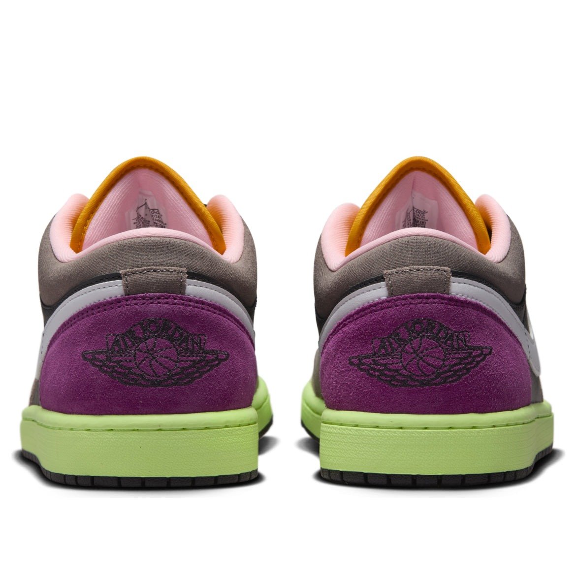 The Jordan 1 Low Tokyo Bio Hack features a Oil Grey/White/Cave Stone/Arctic Punch/Viotech/Dark Sulfur colorway. This Jordan 1 Low was first released for $125 on August 20, 2025.