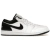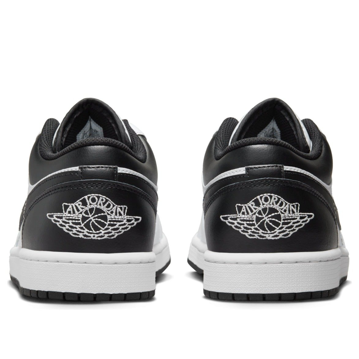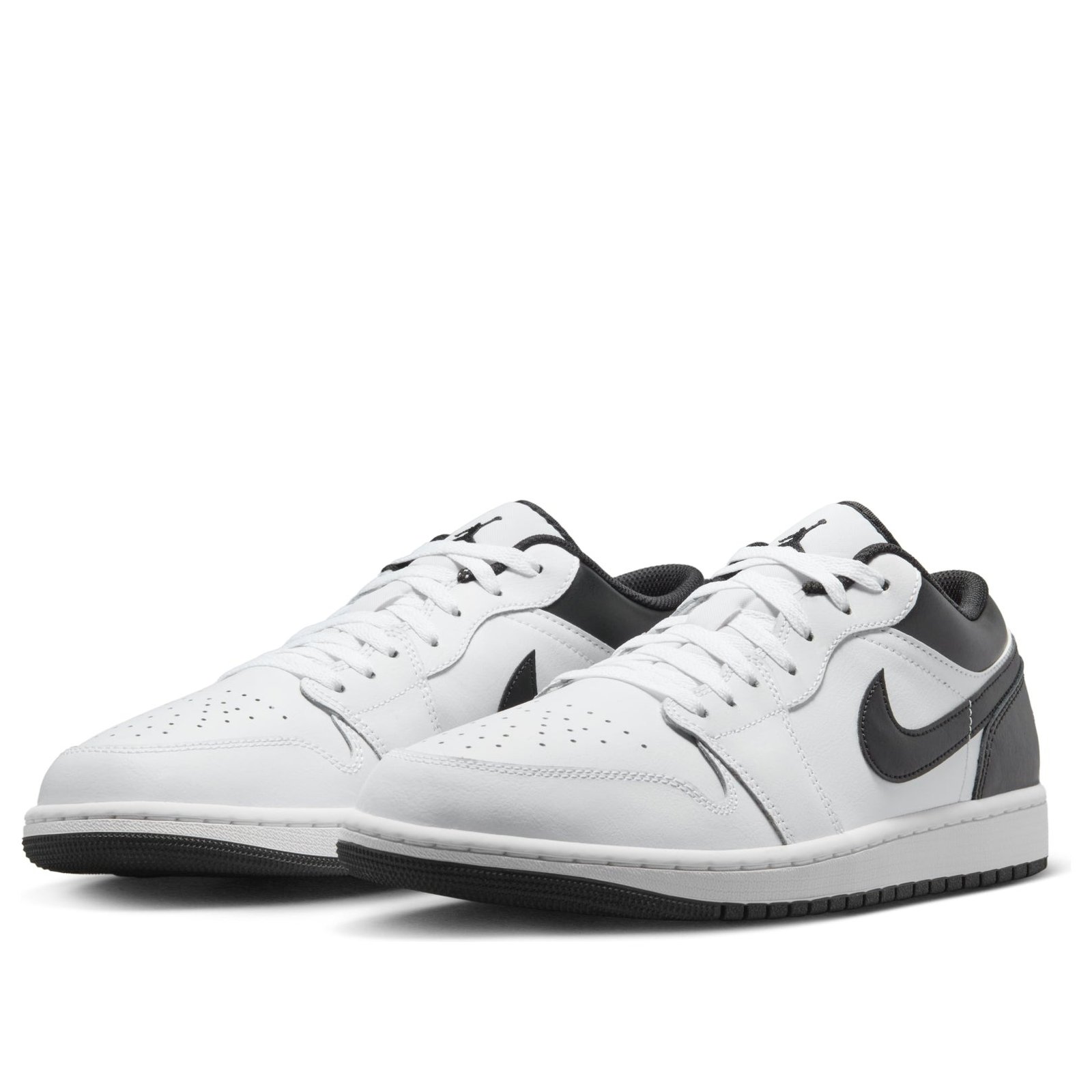 The Jordan 1 Low White Black takes an iconic silhouette designed by Peter Moore and crafts it with unusual color blocking that makes this bold sneaker stand out. The White Black colorway of the Jordan 1 Low-Top features an upper constructed with white smooth leather and black tumbled leather. White smooth leather forms the base of the side panel, toecap, and overlays that adorn the toecap, midfoot, and eyestays. Black tumbled leather forms the padded collar to enhance ankle comfort and the overlays that form the heel counter and side-panel Nike Swoosh. Continuing this colorway, the laces are white, the sock liner is black, and the mesh tongue is white with a black lining. The white foam midsole encapsulates Air for springy cushion and support and the solid black rubber outsole features concentric circles, stars, and grooves that absorb shock and provide traction. Our favorite detail of this instantly classic sneaker is the Air Jordan Wings logo embroidered in white. The striking simplicity of this branding locks in the undeniable style of this shoe. The Jordan 1 Low White Black was released on December 12, 2023, for $115 retail.