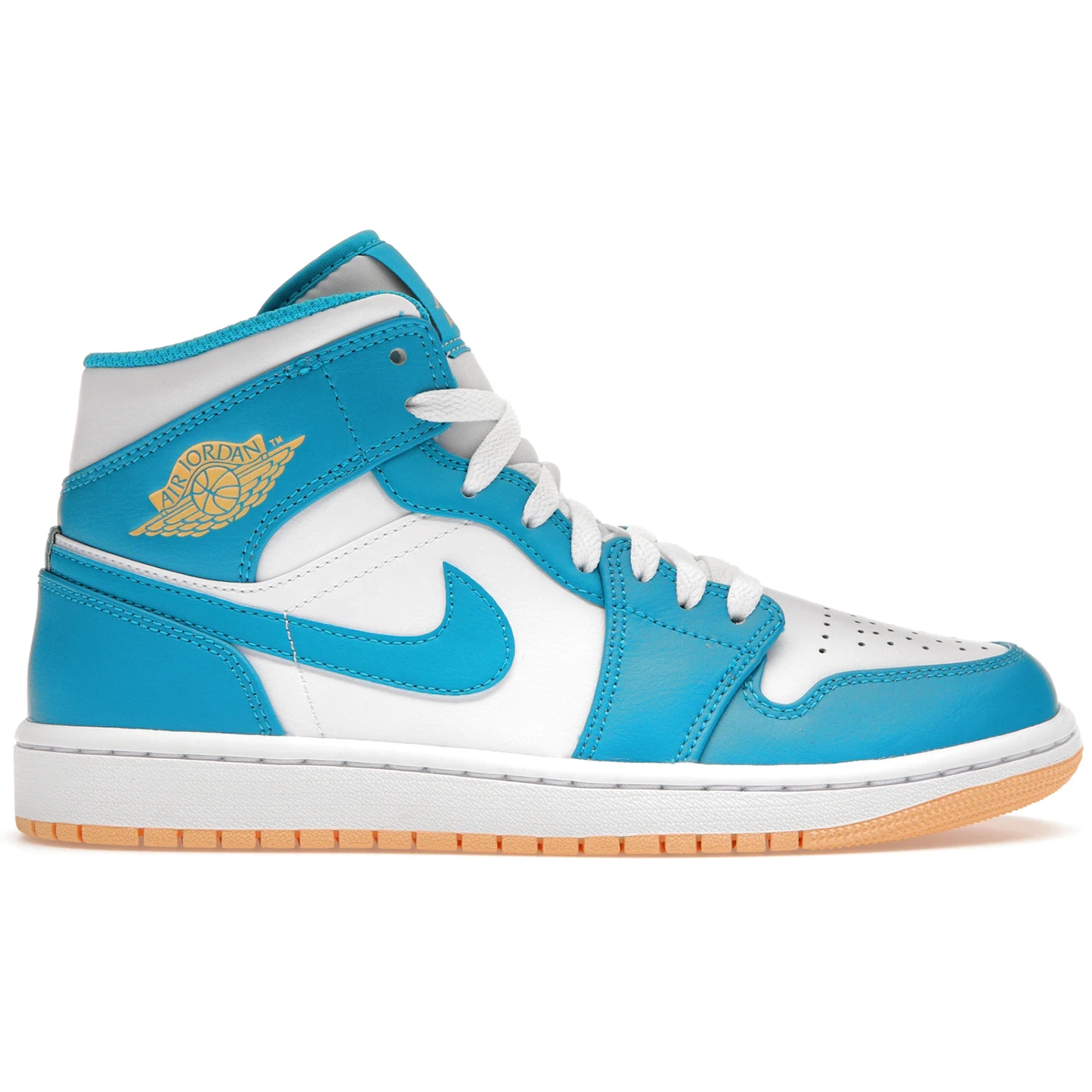 The Jordan 1 Mid Aquatone (GS) was introduced as a new release of the Jordan 1 Mid Aquatone in grade-schooler sizing.This AJ1 Mid sneaker is just about impossible to miss thanks to the bright Aquatone color that is used in conjunction with white on the upper. It also has a few hits of celestial gold on the “Wings” logo and the outsole. Each of these colors works well together to inject even more life into this AJ1 Mid than usual. This shoe has everything from a padded tongue and collar to foam cushioning in the sole that make it more comfortable than ever before.We love the colorway of this shoe the most, but we also don t want to make the mistake of overlooking the technical aspects that make it a true joy to wear. The Jordan 1 Mid Aquatone (GS) was released on 20th April 2023 for $110.
