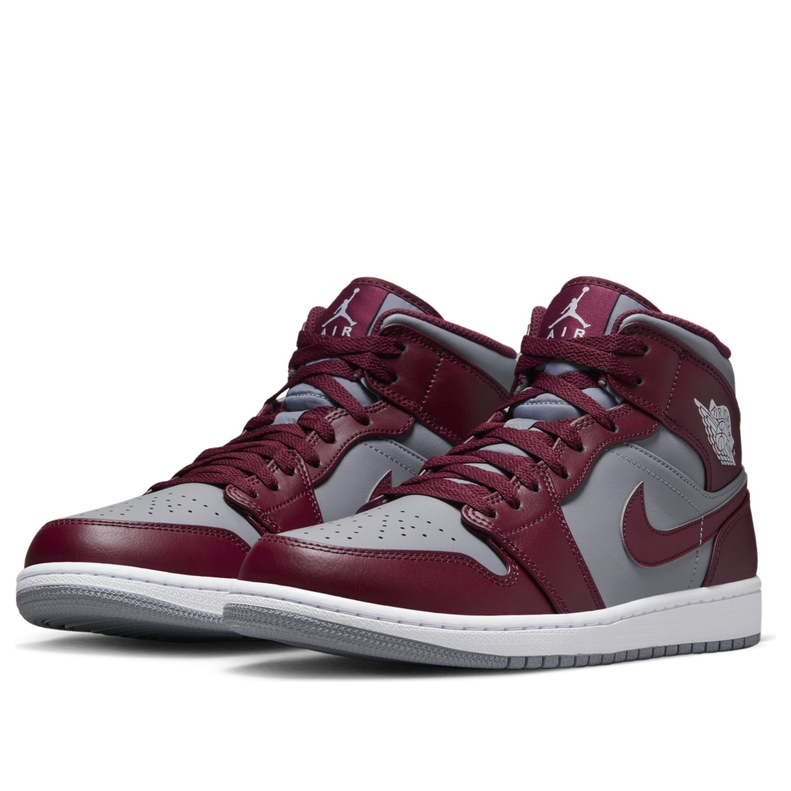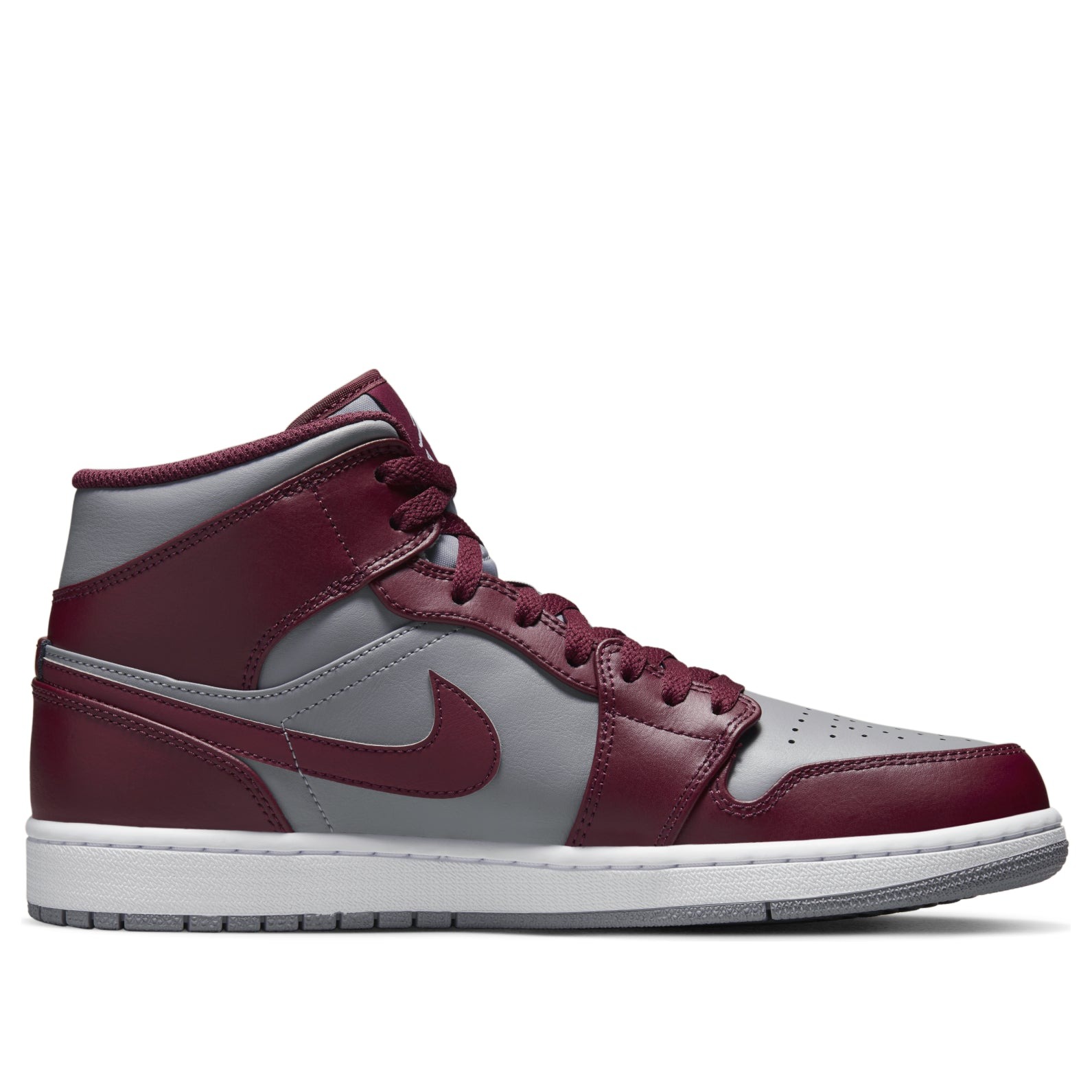 The Air Jordan 1 Mid Cherrywood Red is a mid-top sneaker dressed in a cherrywood red and gray color scheme.This Air Jordan 1 features an all-leather upper with cherrywood overlays against the gray underlays. The color is also visible on the lining and laces. Branding details include Swooshes on the laterals and medials, the Air Jordan Wings logo on the ankle, and the Jumpman logo on the tongue tag and insole. Completing this shoe s design is a white midsole that sits on a grey rubber outsole with AIR units.The Air Jordan 1 Mid Cherrywood Red was released on the 20th of August 2022, retailing at $125.