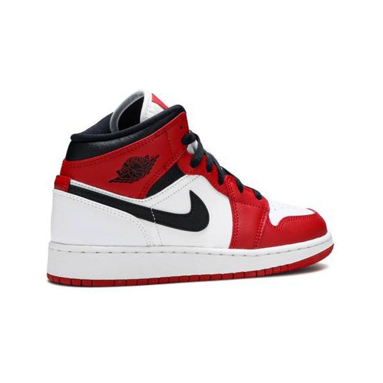 The Kids Air Jordan 1 Mid Chicago 2020 adds a twist to one of Michael Jordan s first signature colorways.The Kids Air Jordan 1 Mid Chicago 2020 comes with a white, red, and black color scheme, with iconic features such as the Jordan Brand Wings and Nike Swoosh logos. Unique design traits such as padded ankle support and a perforated vamp add to the sneaker’s comfort and breathability on and off the court. At the base, the sneaker features a white midsole with Air technology to enhance its support. Black cotton laces, a white leather tongue, and a white Jumpman completes the design.The Kids Air Jordan 1 Mid Chicago 2020 released in July of 2020 for $90.