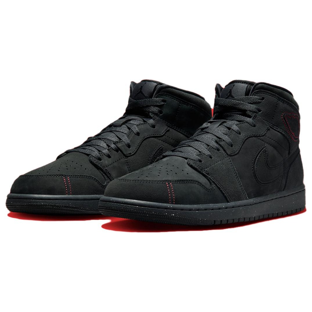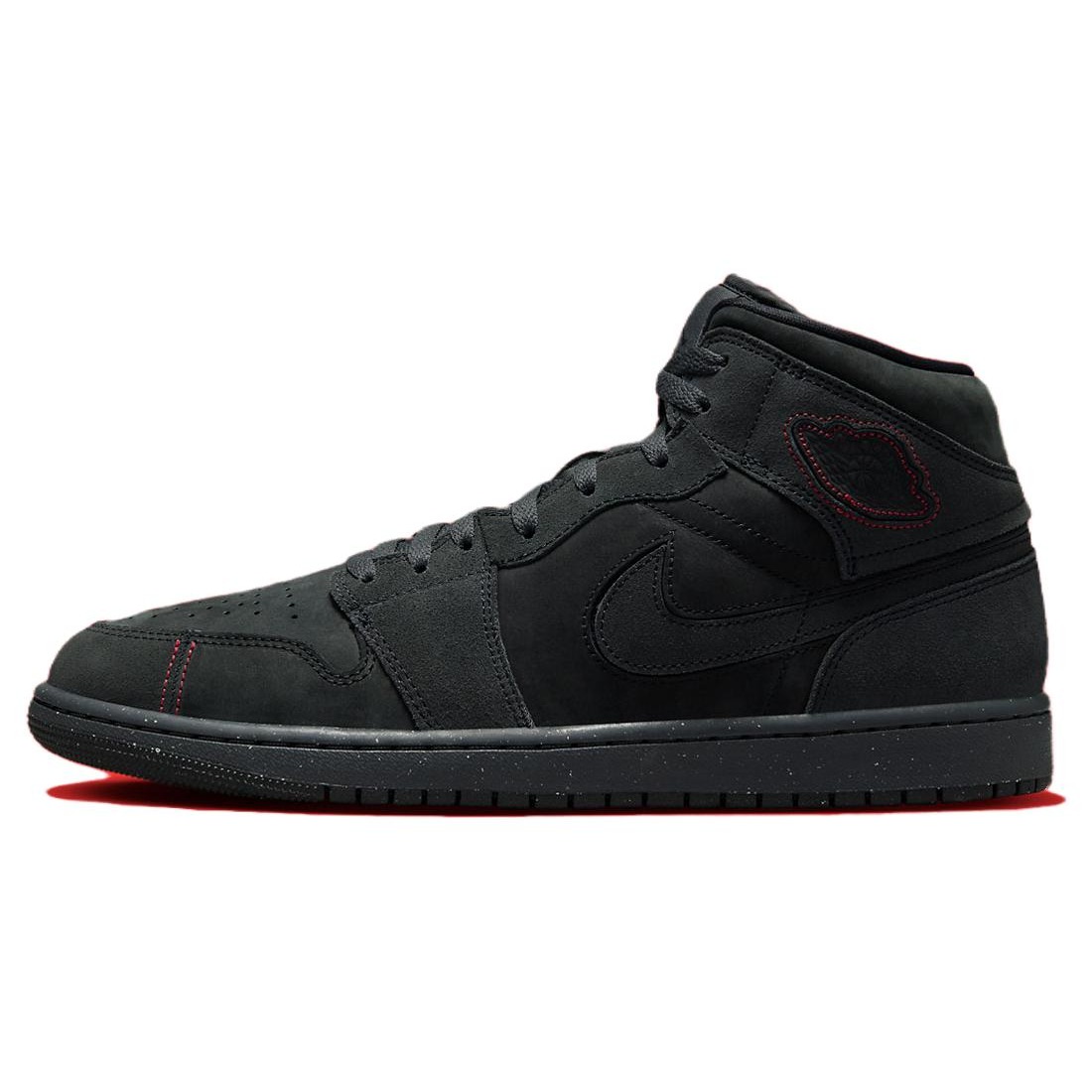 The Jordan 1 Mid SE Craft Dark Smoke Red is a special edition sneaker that boasts a dark upper with stitched accents in Varsity Red.This mid-top sneaker features an upper crafted from velvety suede, leather, and textile in Dark Smoke Grey. Although the materials offer different textures, the overall effect is subtle. Unlike other versions of this sneaker, the Craft Dark Smoke Red iteration doesn t boast color blocking. The only pop of color is the Varsity Red thread, which outlines the Air Jordan Wings on the ankle overlay, accents the heel, and forms four rows of stitching on the toe. The signature Nike Swoosh and the tongue s logo tag both come in black.Our experts like the black rubber outsole because it houses silver sparkles that look like stars in the night sky. The Jordan 1 Mid SE Craft Dark Smoke Red was originally released on December 22, 2023, and sold for $135.