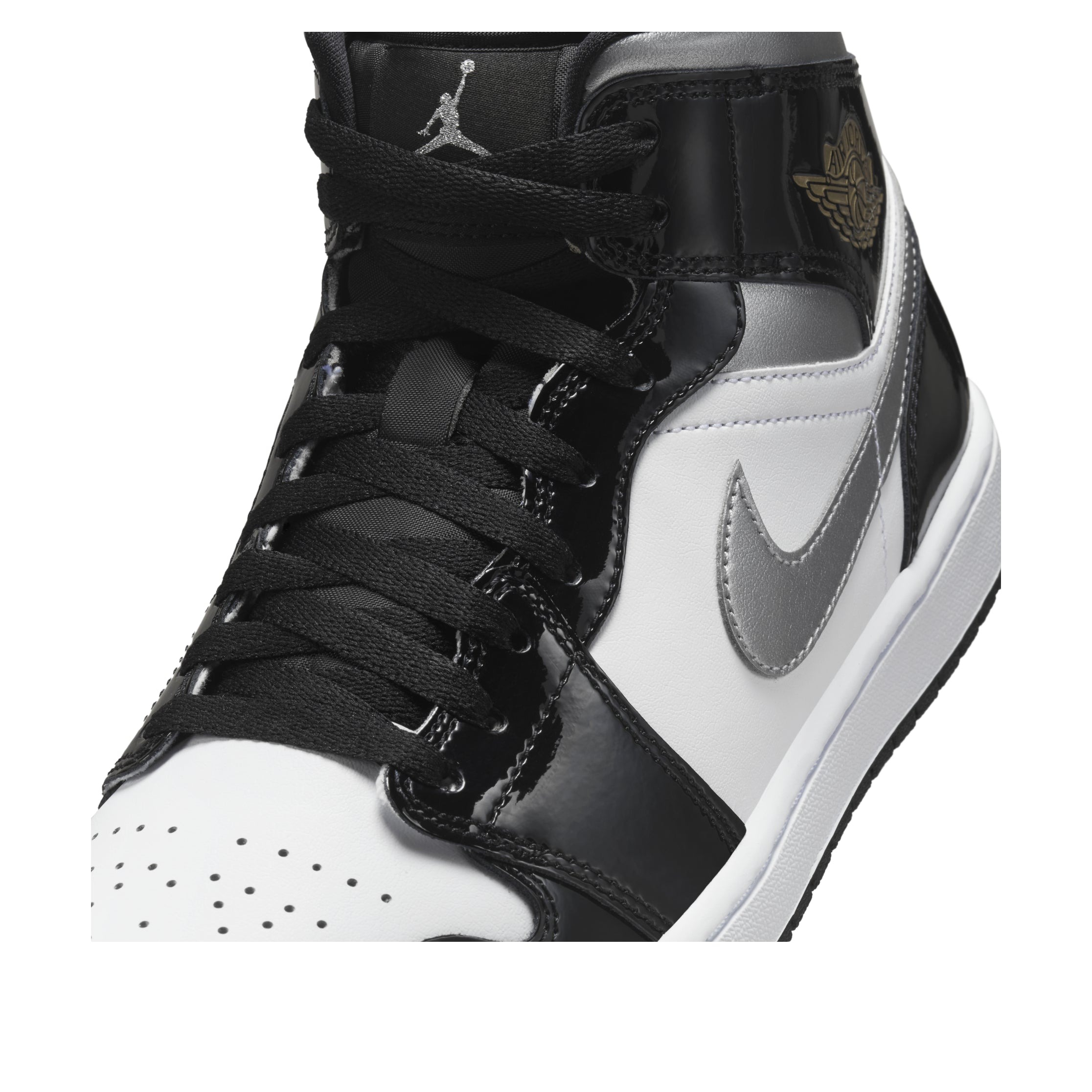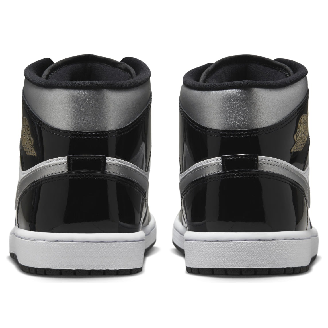 Jordan 1 Mid SE Patent Black White Metallic Silver Metallic Gold