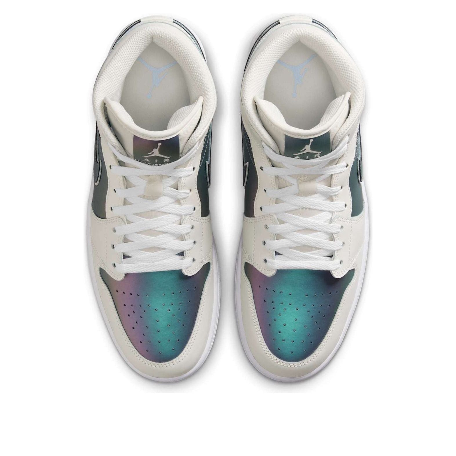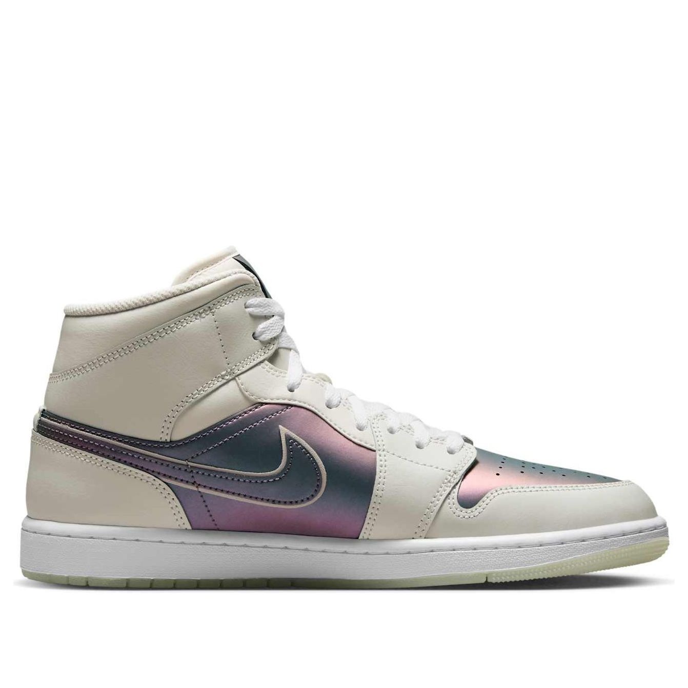 The Jordan 1 Mid SE Phantom Iridescent features a Phantom/Phantom/White colorway. This Jordan 1 Mid SE was first released for $140.