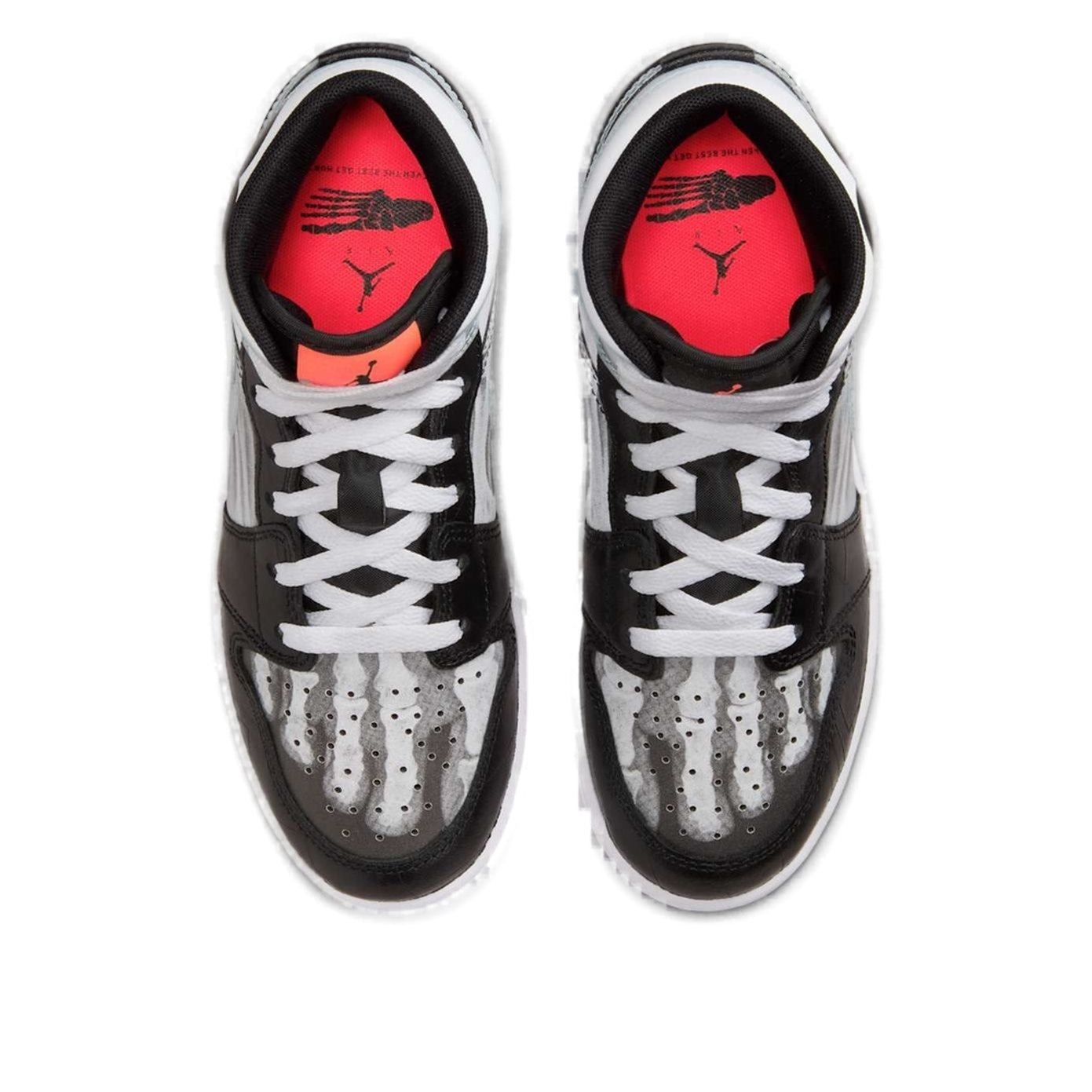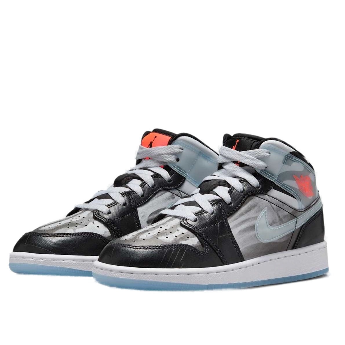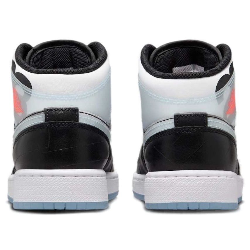 The Jordan 1 Mid SS X-Ray (GS) features a Black/Ice Blue-Total Crimson-White colorway. This Jordan 1 Mid SS was first released for $120.
