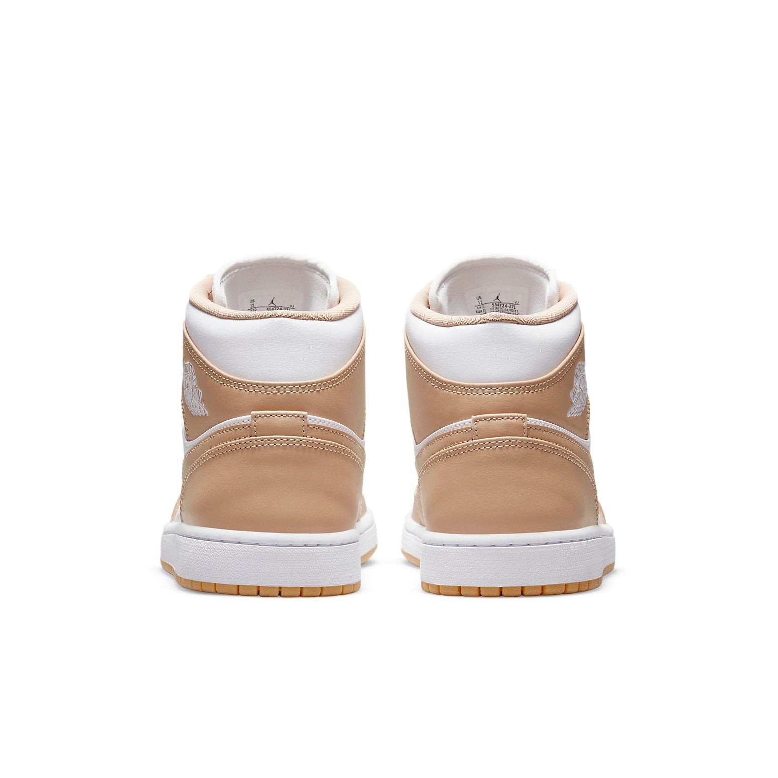 The Jordan 1 Mid Tan Gum features a white leather upper with Tan overlays and Swooshes. At the collar, a signature Air Jordan Wings logo is printed in white, similar to the original 1985 Air Jordan 1. From there, a Jumpman tongue label and gum outsole add the finishing touch.The Jordan 1 Mid Tan Gum released in September of 2021 and retailed for $120.