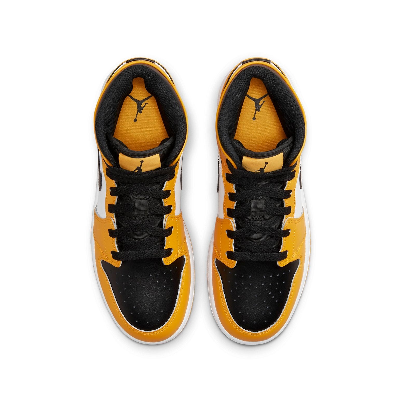 The upper of the Air Jordan 1 Mid Taxi GS is made of leather. The sneaker also has a white base that is accented by yellow overlays as well as black-toe portions. The black color on the toe portions of the Air Jordan 1 Mid Taxi GS for grade-schoolers continues at the sneaker s tongues, on the laces, and on the collar to complete the contrasting tri-tone combination. The Air Jordan 1 Mid Taxi GS made its debut in the market on August 20th, 2022. When it was released, this sneaker had a recommended retail price of $100.