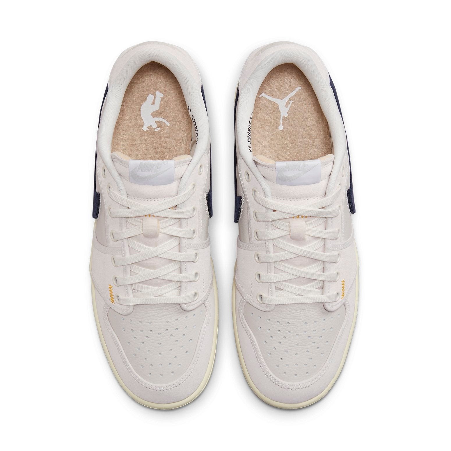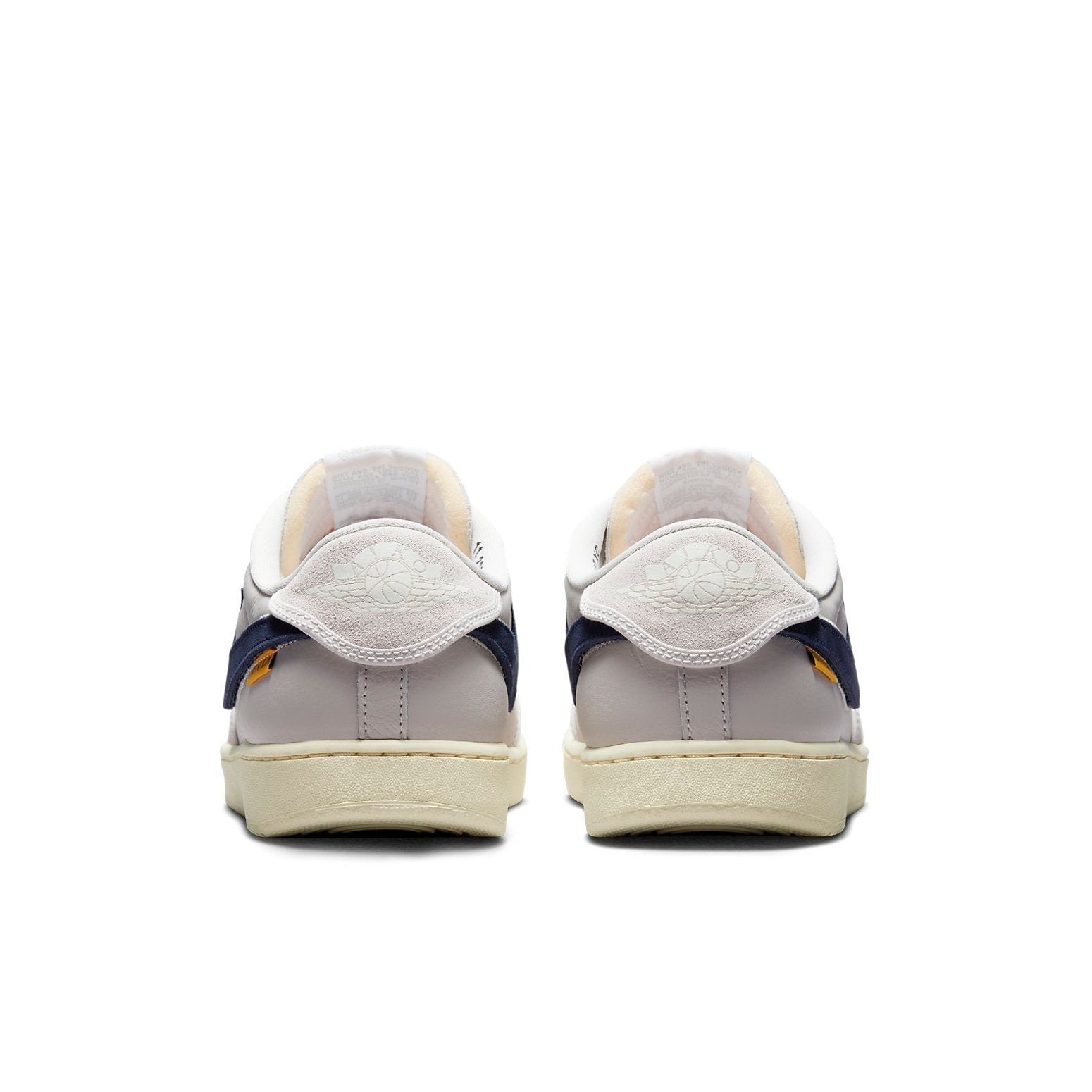 Black, Muslin-Neutral Grey, and Sail make up the color palette of the Air Jordan 1 Retro AJKO Low SP. The upper is composed of sail canvas and is enhanced by black suede Nike Swoosh and tone-on-tone overlays. The shoe also features a UN/LA tag, with the Union LA monogram situated behind the comma, and yellow stitching on the forefoot to complete the design.
