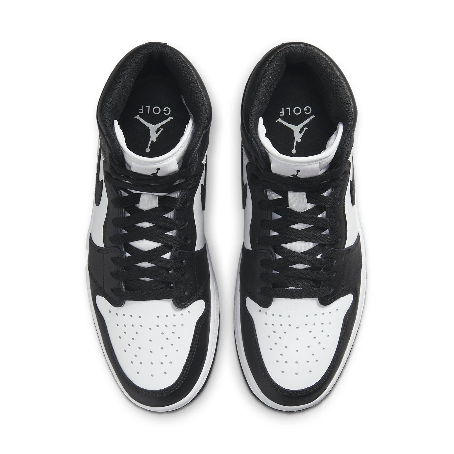 The two primary colors that define the outside appearance of the Air Jordan 1 Retro High Golf Black White are black and white.The Retro High Golf Black White Air Jordan 1 combines the timeless design elements of the classic AJ1, which includes a leather upper, Wings logo, and iconic Swoosh, with golf-specific enhancements. The most noticeable modification on this shoe is on its outsole. The outsole of this sneaker features a distinct circular pattern molded into the rubber traction, which offers an excellent grip on the golf course. Additionally, the shoe incorporates Jumpman Golf branding on its insole as well as on the tongue. This shoe also includes an Air-Sole unit in the heel and the forefoot. The shoe’s upper is made of high-quality leather.The Air Jordan 1 Retro High Golf Black White first hit the market space on January 13, 2023, and was sold for $180.