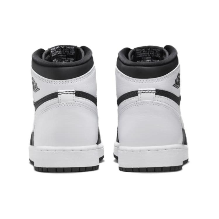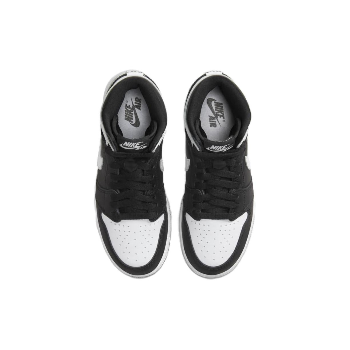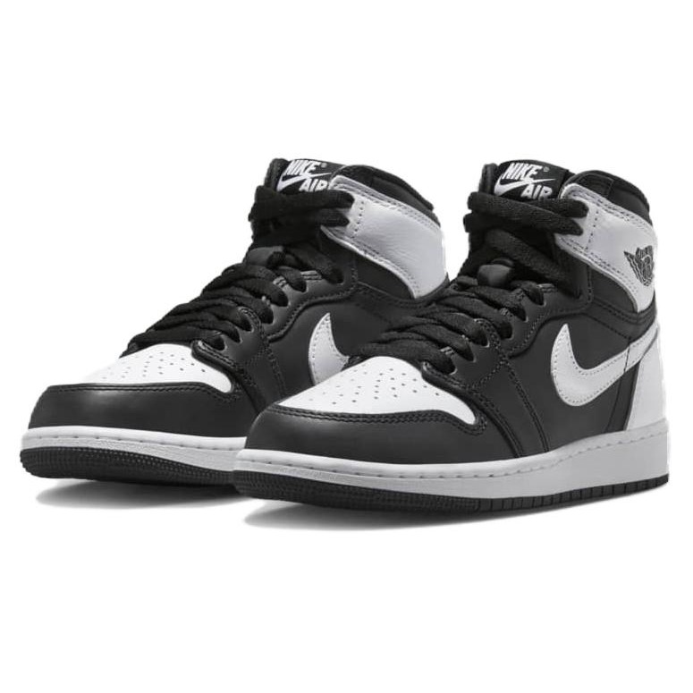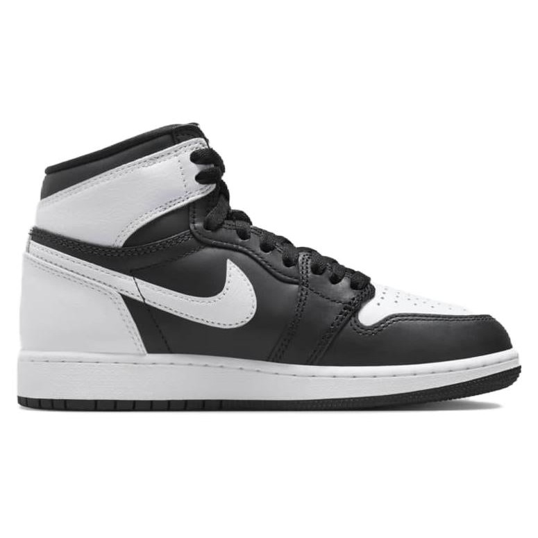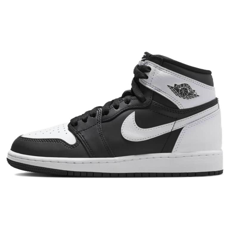 The Jordan 1 Retro High OG Black White (GS) is a grade school-sized shoe with a high-top silhouette and a sleek colorway.This iteration of the Jordan 1 Retro High OG features a black and white leather upper. Black dominates the side panels of the shoe and rounds out the toebox. The toebox itself is white, perforated for breathability, and white also appears on the heel counter and ankle strap. The Nike Swoosh appears in white across the sides. A black Air Jordan logo can be seen on the ankle strap on the lateral side, and a Nike Air logo appears on the tongue in white. A white sole and black outsole complete the look.Our favorite aspect of this shoe is the black and white colorway, which makes the sports shoe a little more elegant. The Jordan 1 Retro High OG Black White (GS) was released on February 24, 2024, for a list price of $140.
