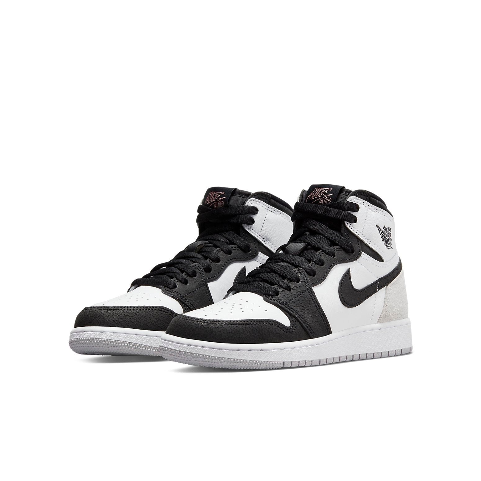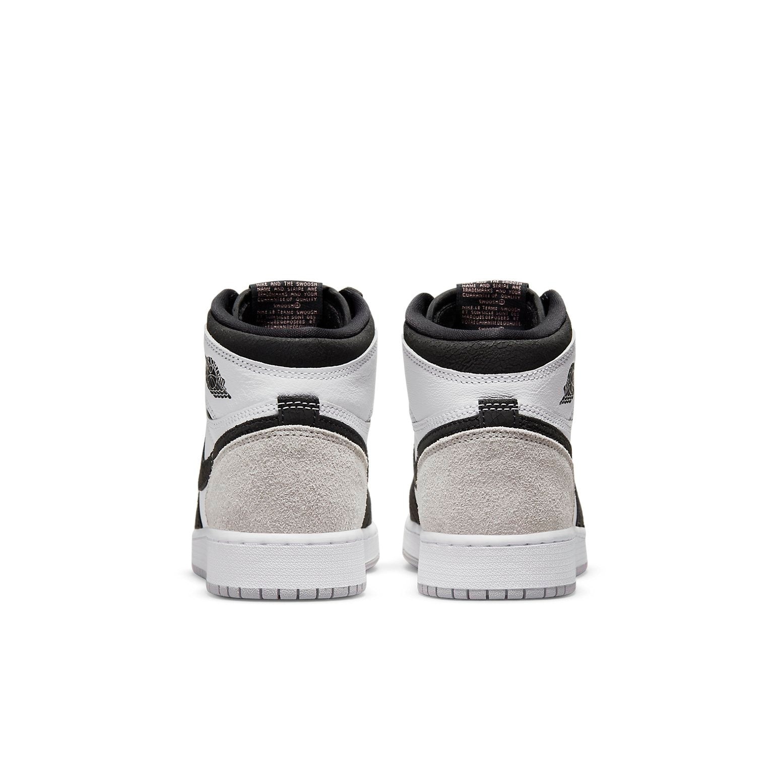 Released in June of 2022, the Retro High Stage Haze (GS) for grade schoolers for grade schoolers from Air Jordan consists of a simple pattern that is a mix of black, grey, and white. This specific model has a tongue label that contains a touch of coral, which can also be seen partially on the insole.The primary material of the Air Jordan 1 Retro High Stage Haze (GS) for grade schoolers is both cracked and smooth leather, with suede being used on the sides and heels. The laces follow the entire length of the shoe and go to approximately mid-ankle. The original retail price for the Air Jordan 1 Retro High Stage Haze (GS) for grade schoolers model started at $170 for men s sizes.