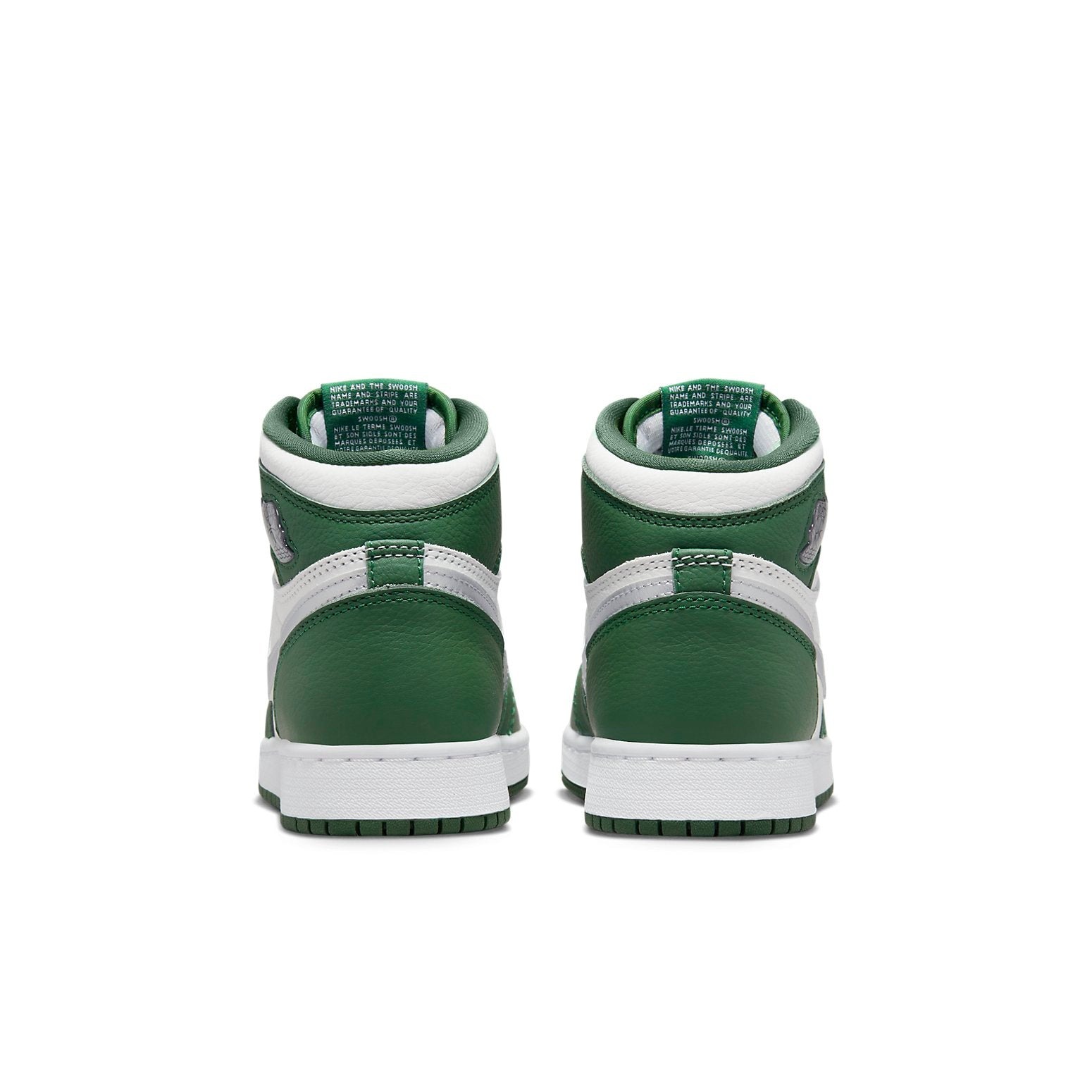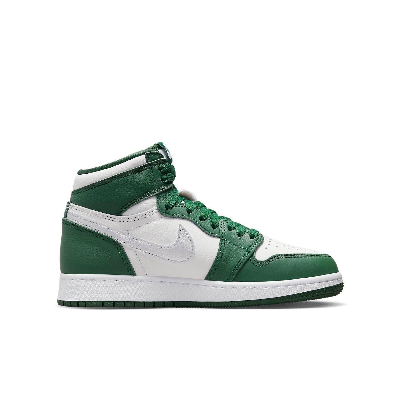 The Air Jordan 1 Retro High OG Gorge Green White GS comes in a colorway that includes gorge green, metallic silver, and white.A blend of different materials, such as soft leather, canvas, and nubuck, is used in the manufacture of this Retro High Air Jordan 1 for grade schoolers (GS). The toe cap of the sneaker is made up of perforated white leather. A green and white long tongue underlies the shoe s green cotton laces. The design is completed with a white midsole, green outsole, and AIR units.The Air Jordan 1 Retro High OG Gorge Green White GS was first released on December 20th, 2022, with $140 as the retail price.