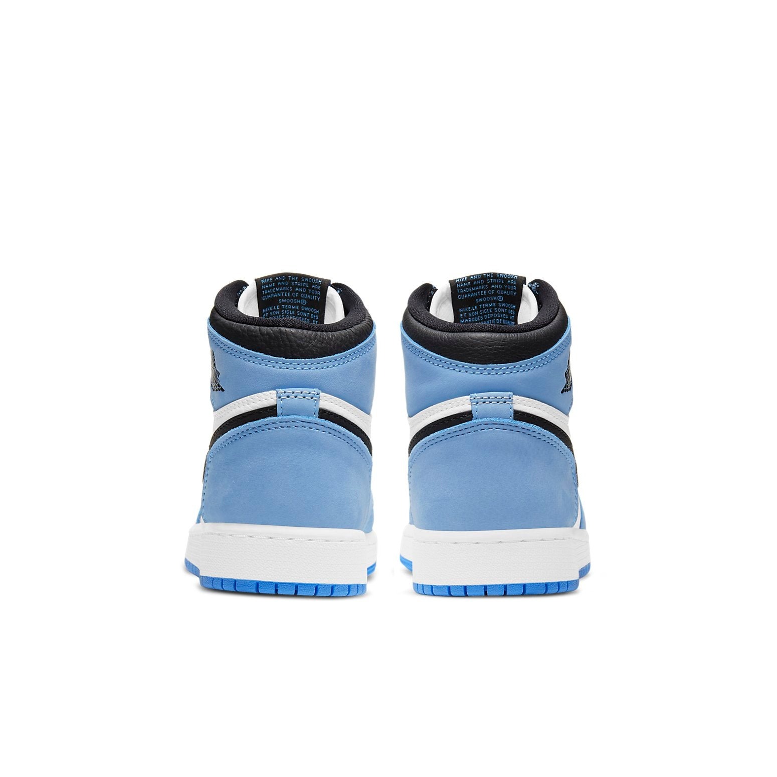 The Air Jordan 1 Retro High White University Blue Black GS features a tumbled white leather upper with perforations on the toe box. Overlays are made of University Blue supple suede and the Swoosh and collar are black tumbled leather. The outsole is University Blue with concentric circles in the rubber. The Air midsole is white, the laces are black, and a black Wings logo accents the University Blue suede overlay on the collar. The grade school-sized Air Jordan 1 Retro High White University Blue Black GS, was released on March 6, 2021, at a retail price of $140.