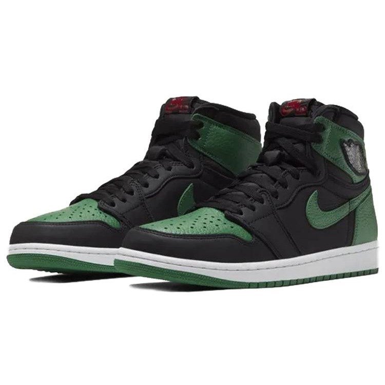 Jordan Brand added new colors to a classic silhouette with the Jordan 1 Retro High Pine Green Black, now available on Newsole. This colorway draws inspiration from the Jordan 1 Retro High Pine Green from 2019, only this time the entire upper features black and pine green hues.This Jordan 1 High is comprised of a black tumbled leather upper with green leather overlays. A Gym Red embroidered tongue tag, sail midsole, and pine green outsole completes this design. These sneakers released in February of 2020 and retailed for $170. If you are looking for the Jordan 1 Retro High Pine Green 2018 click HERE.